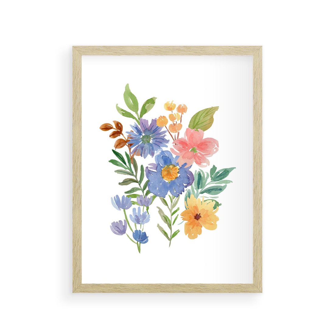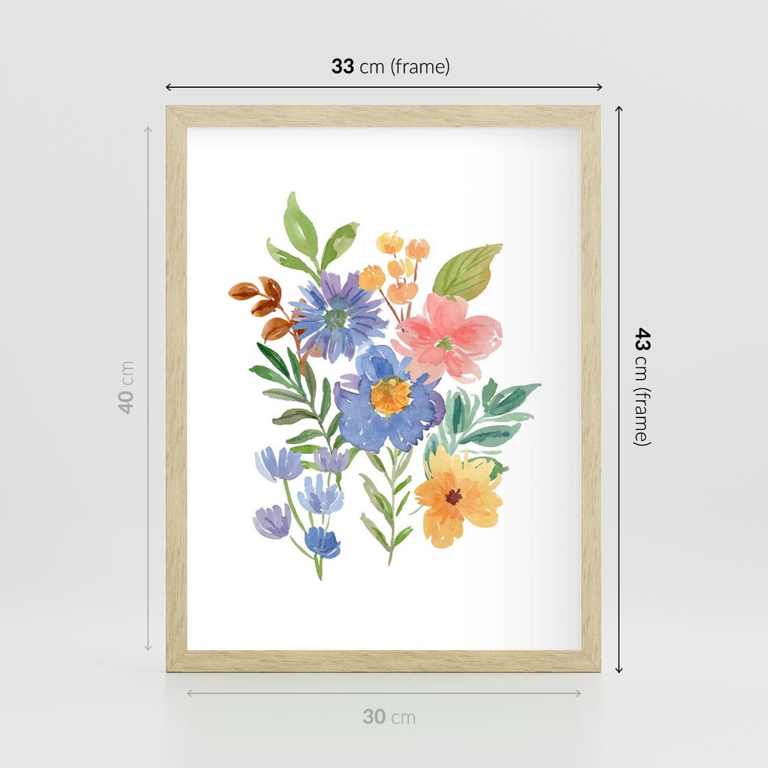 Plakat w ramie 30x40 - Kwiatowe Opowieści - akwarelowe polne kwiaty, minimalistyczna sztuka - rama drewno