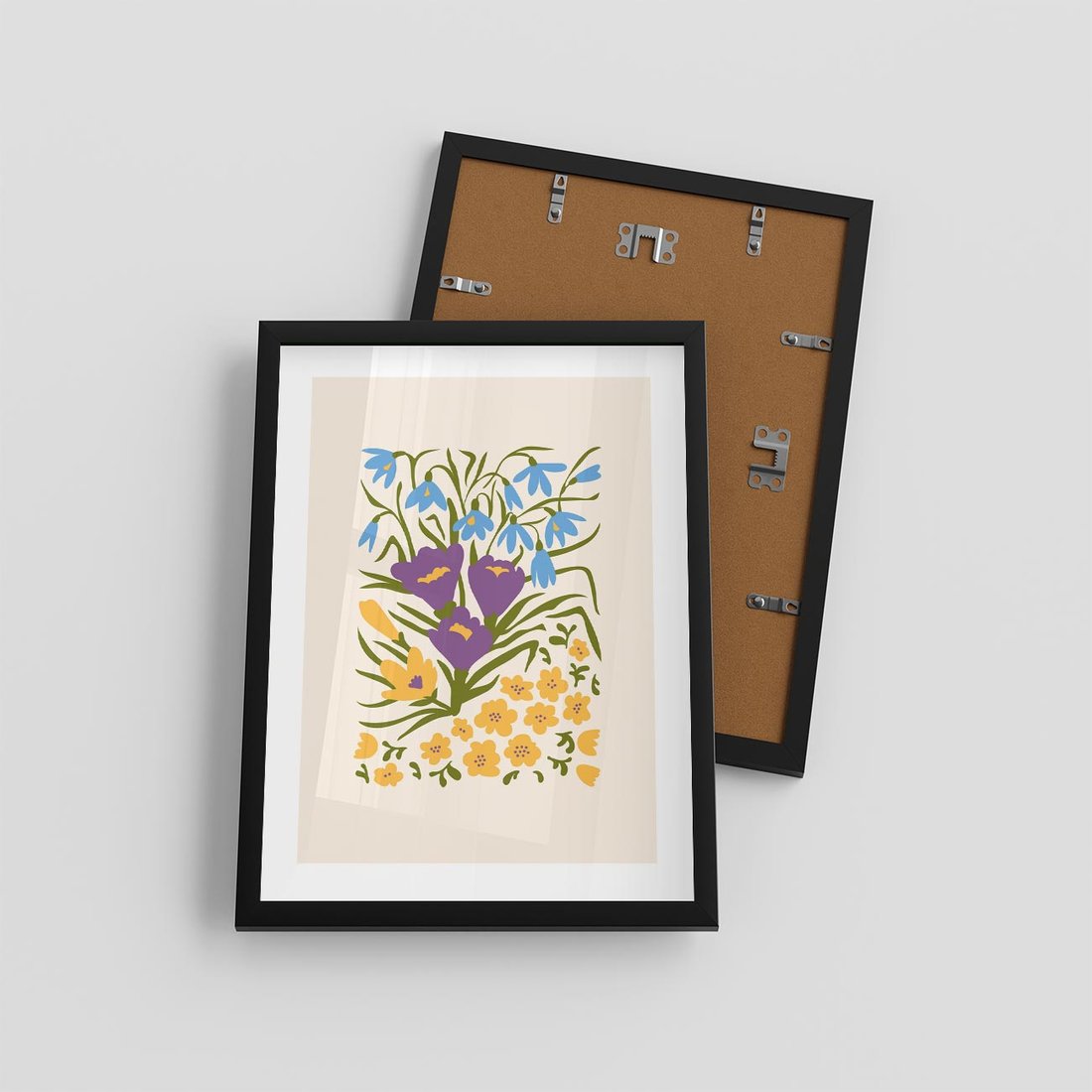 Ten minimalistyczny plakat prezentuje sztukę nowoczesną poprzez subtelnie ułożone kwiaty w harmonijnej kompozycji. Przez zastosowanie minimalizmu, ta praca sztuki wydobywa esencję piękna kwiatów, tworząc elegancki i spokojny element dekoracyjny, który dodaje wyjątkowej atmosfery Twojej przestrzeni.