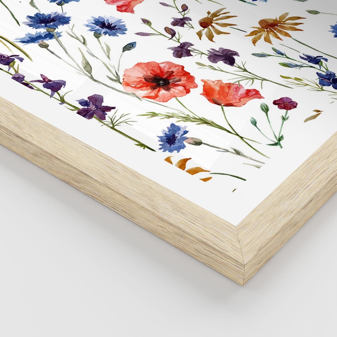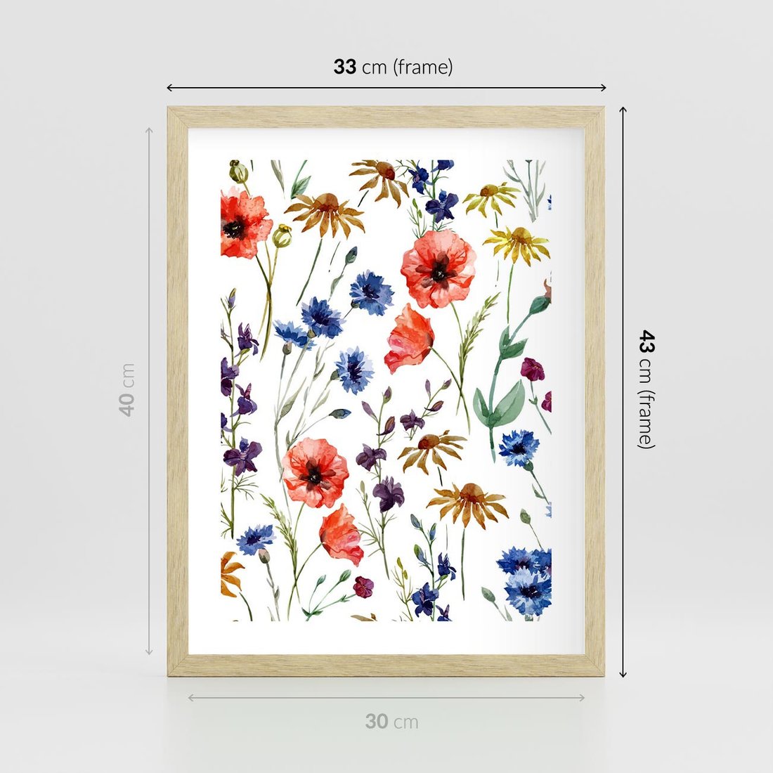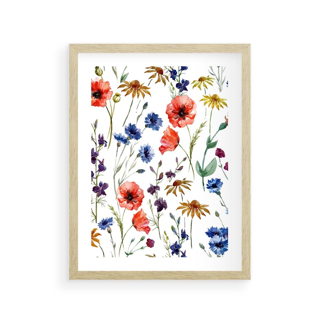 Plakat w ramie 30x40 - Kwiatowe radości na łące - kwiaty, łączka - rama drewno
