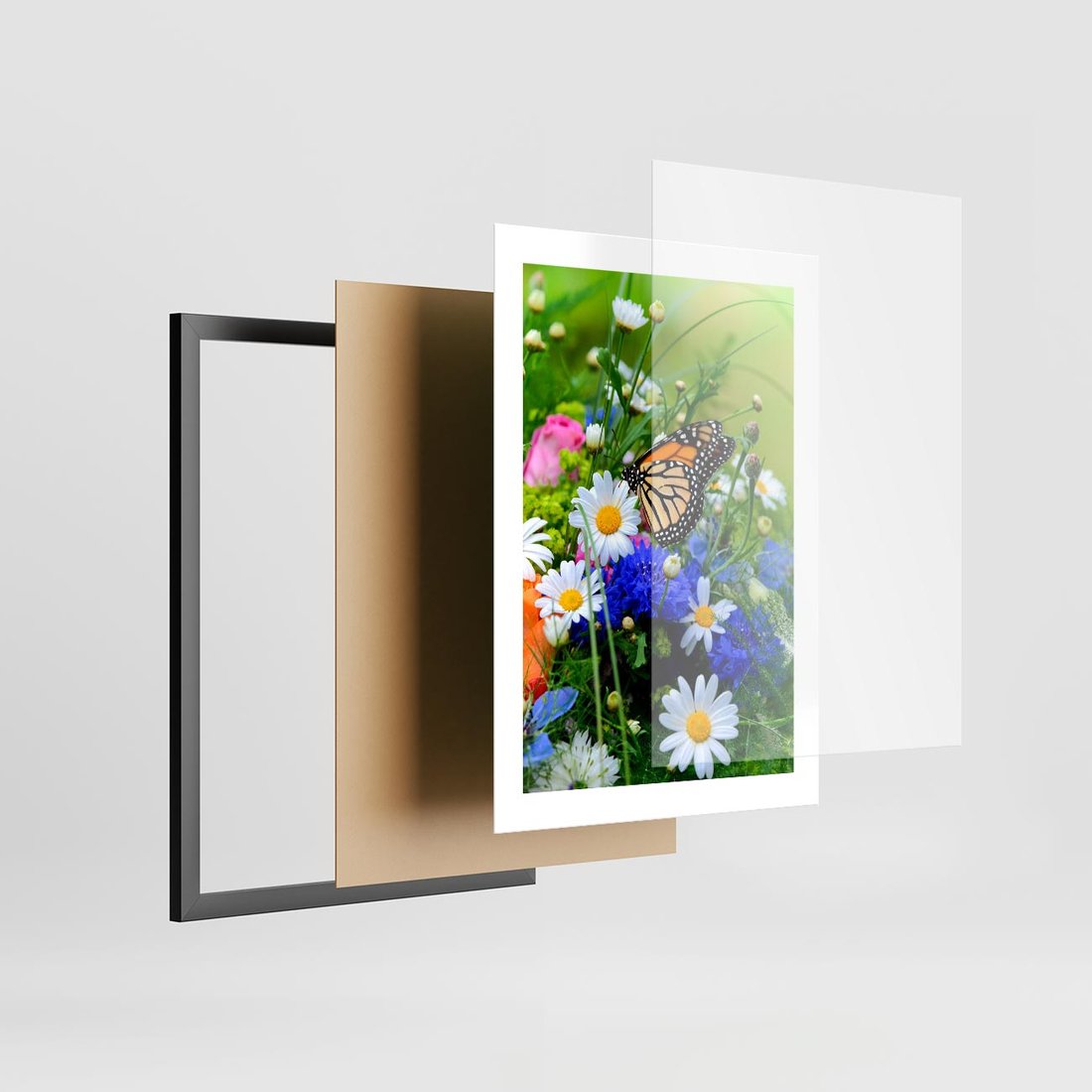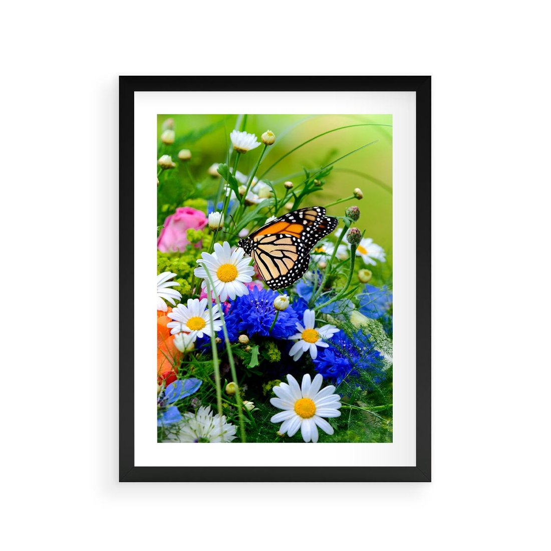 Plakat w ramie 30x40 - Kwiatowy Taniec - motyl, kwiaty - rama czarna