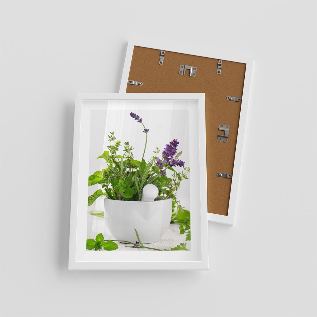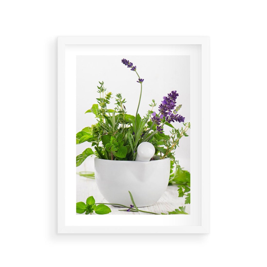 Plakat w ramie 30x40 - Kwiaty i zioła w restauracji - kwiaty, zioła - rama biała