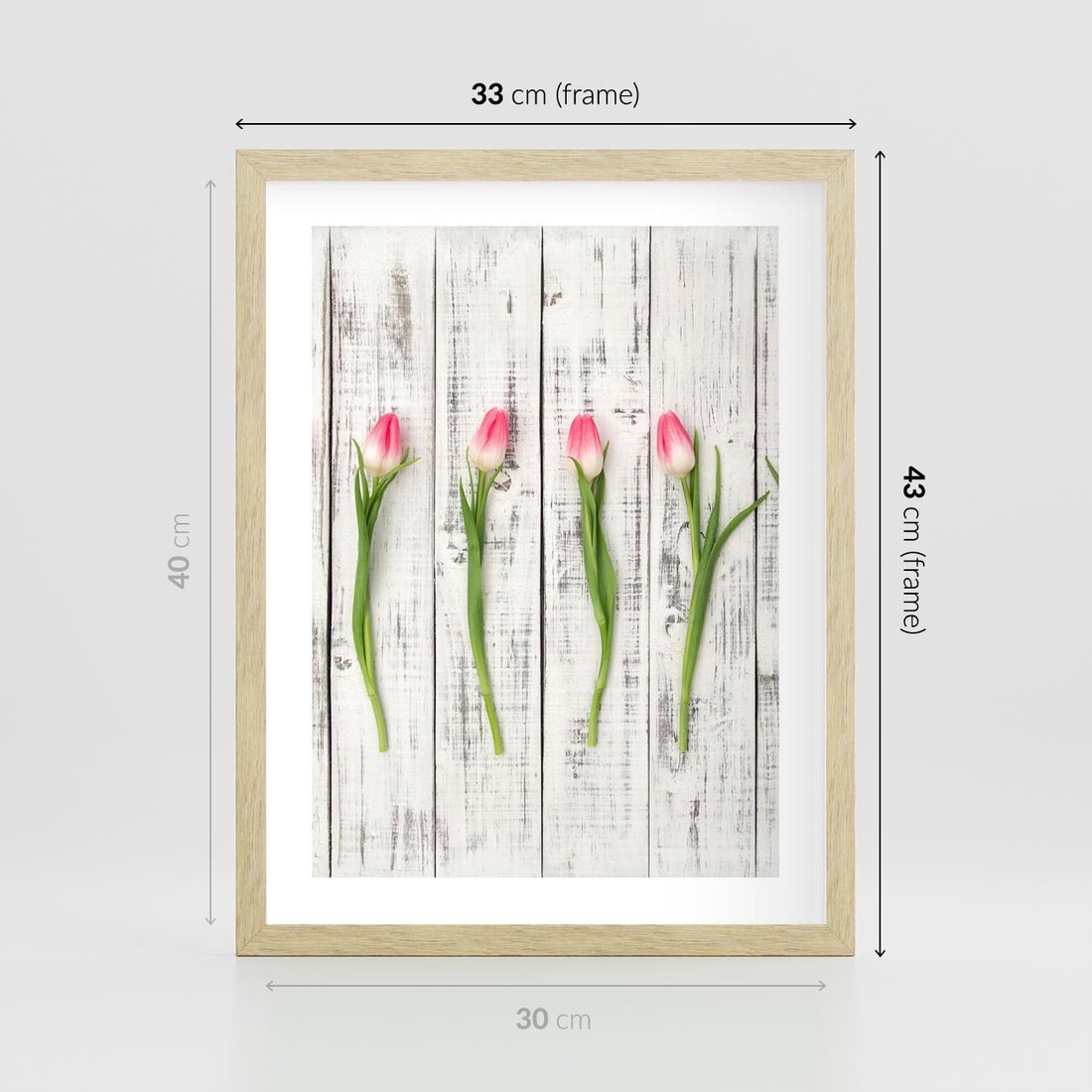Plakat w ramie 30x40 - Kwintesencja Piękna - kwiaty, tulipany - rama drewno
