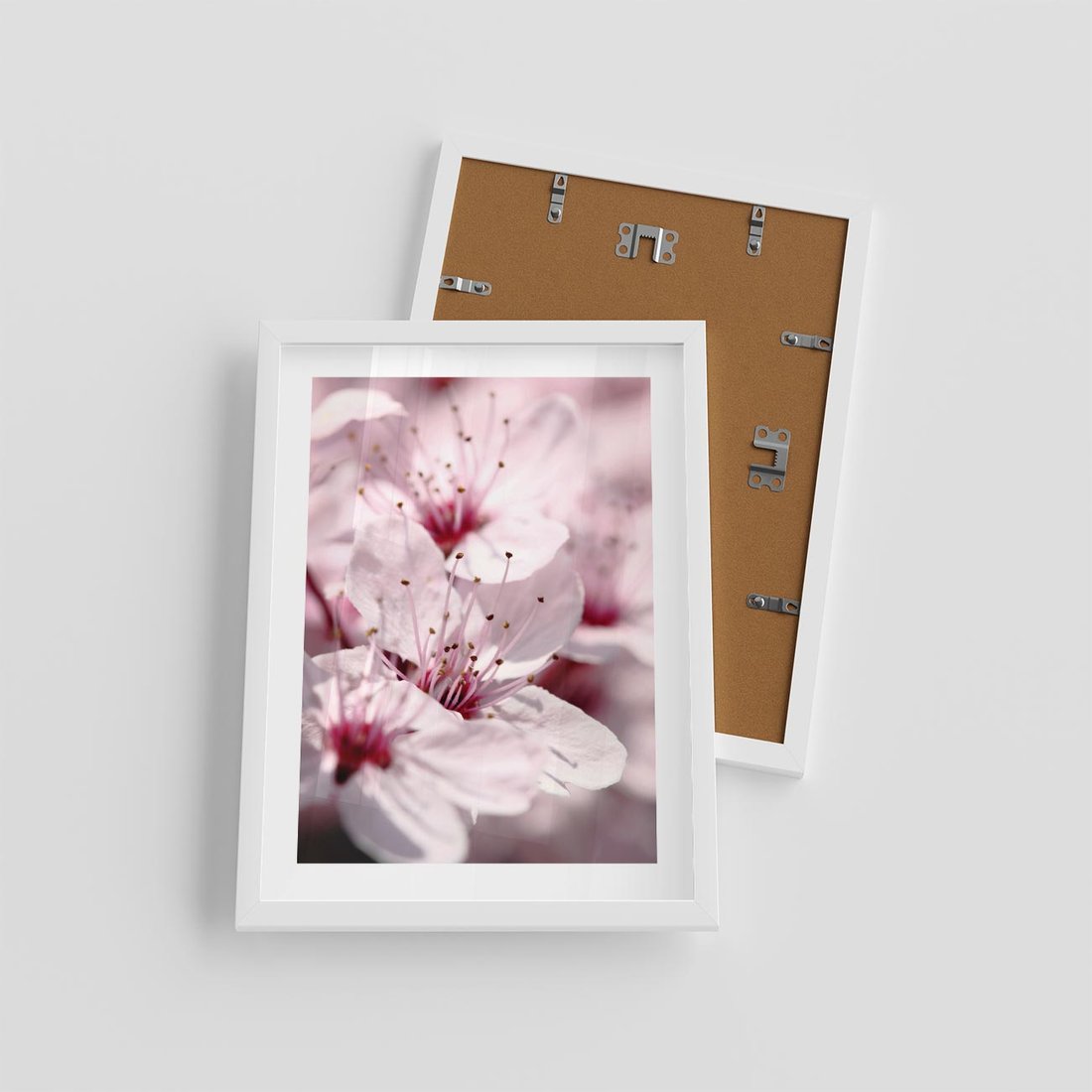 Plakat w ramie 30x40 - Kwitnąca Wiśnia - kwiaty, kwitnąca - rama biała