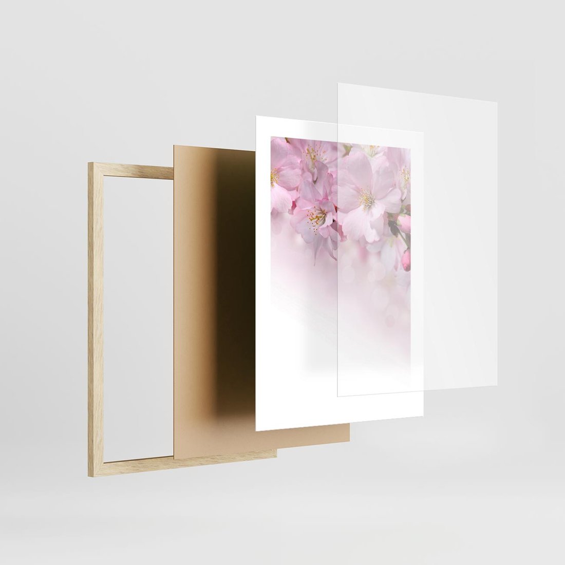 Plakat w ramie 30x40 - Kwitnąca Wiśnia - kwiaty, kwitnącej - rama drewno