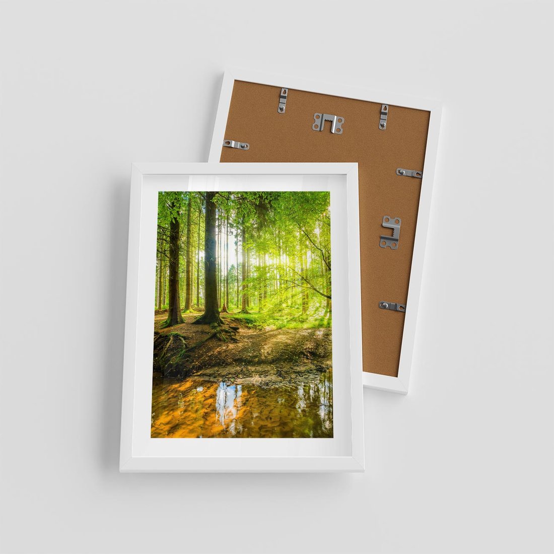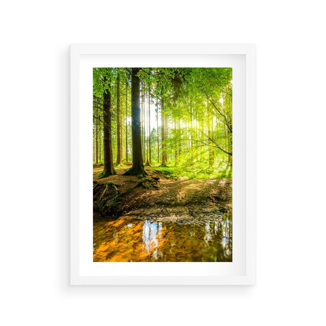 Plakat w ramie 30x40 - Las nad Wodą - las, woda - rama biała