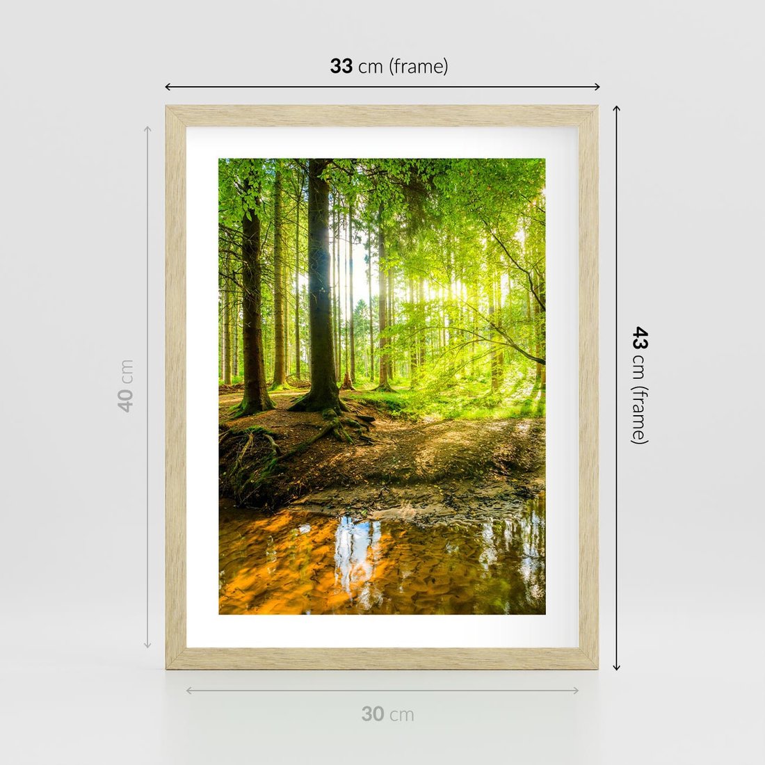Plakat w ramie 30x40 - Las nad Wodą - las, woda - rama drewno