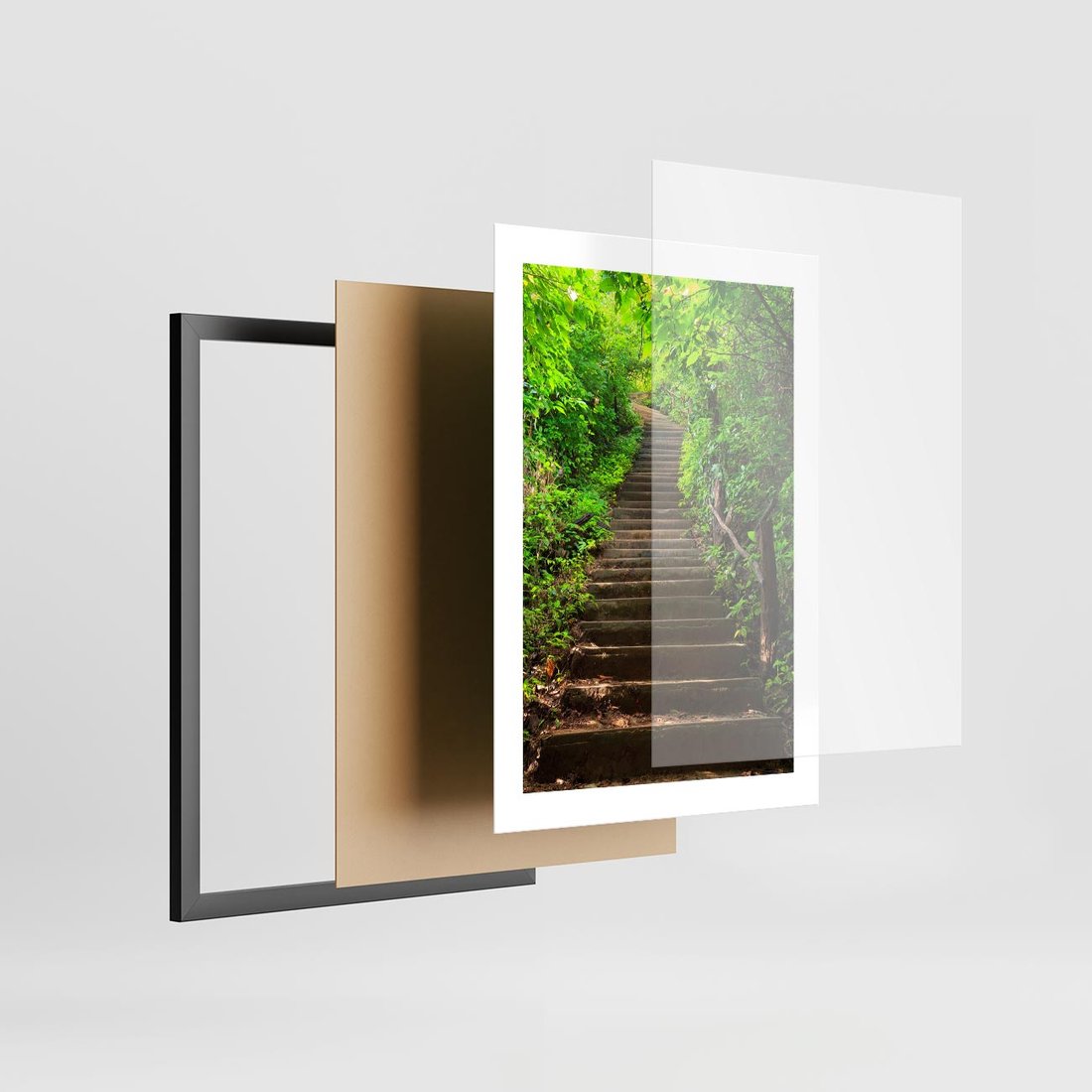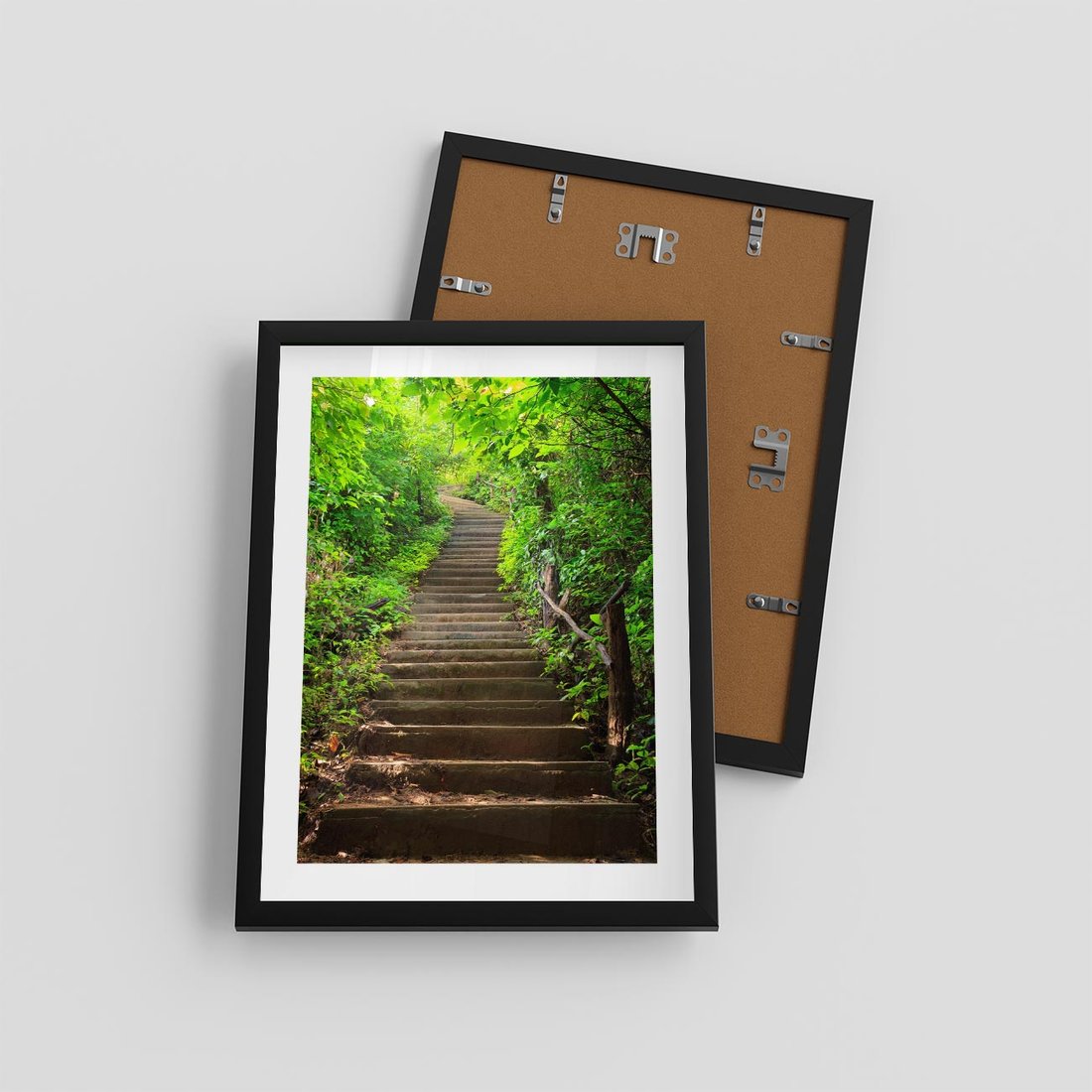 Plakat w ramie 30x40 - Lasowa ścieżka pełna tajemnic - ścieżka, schody - rama czarna