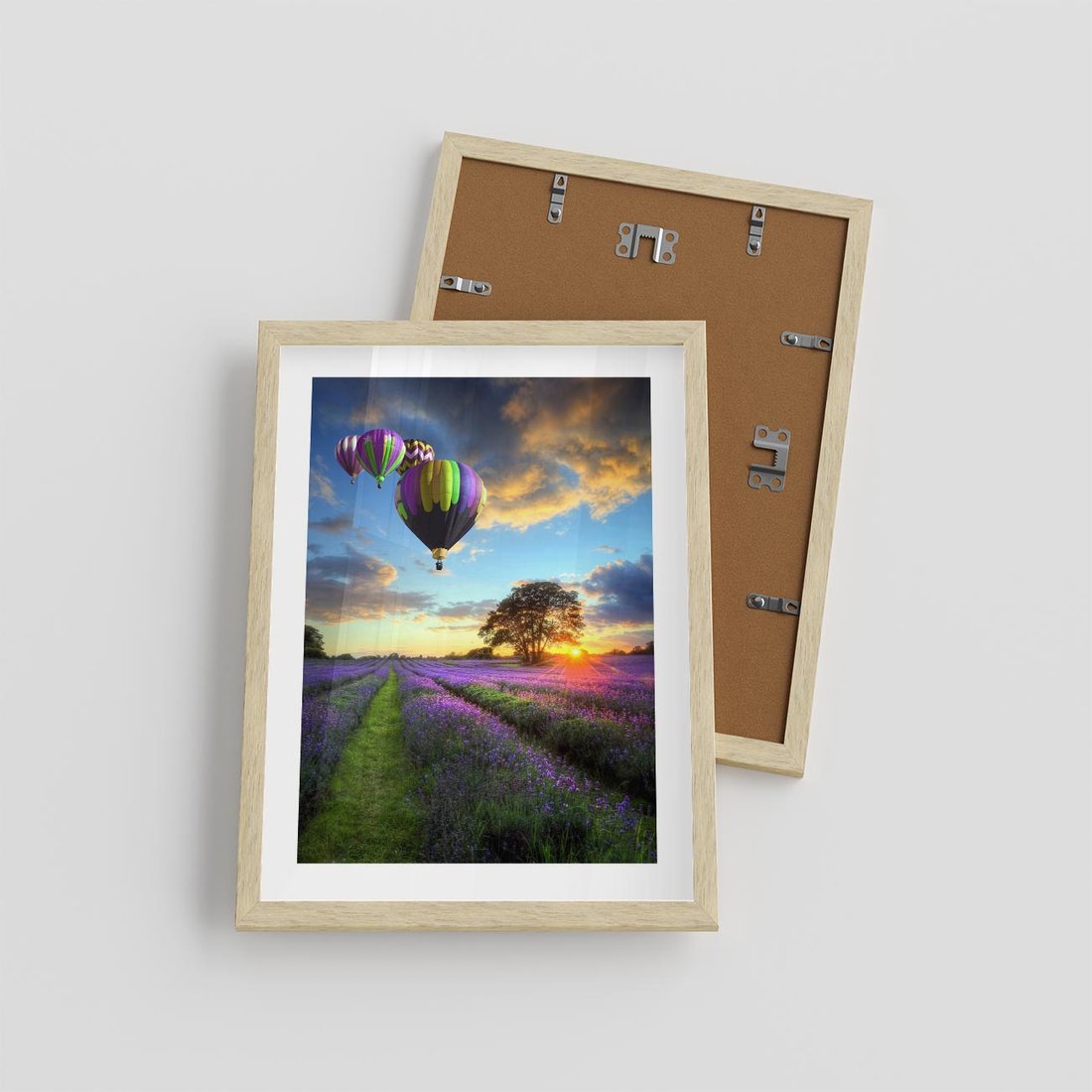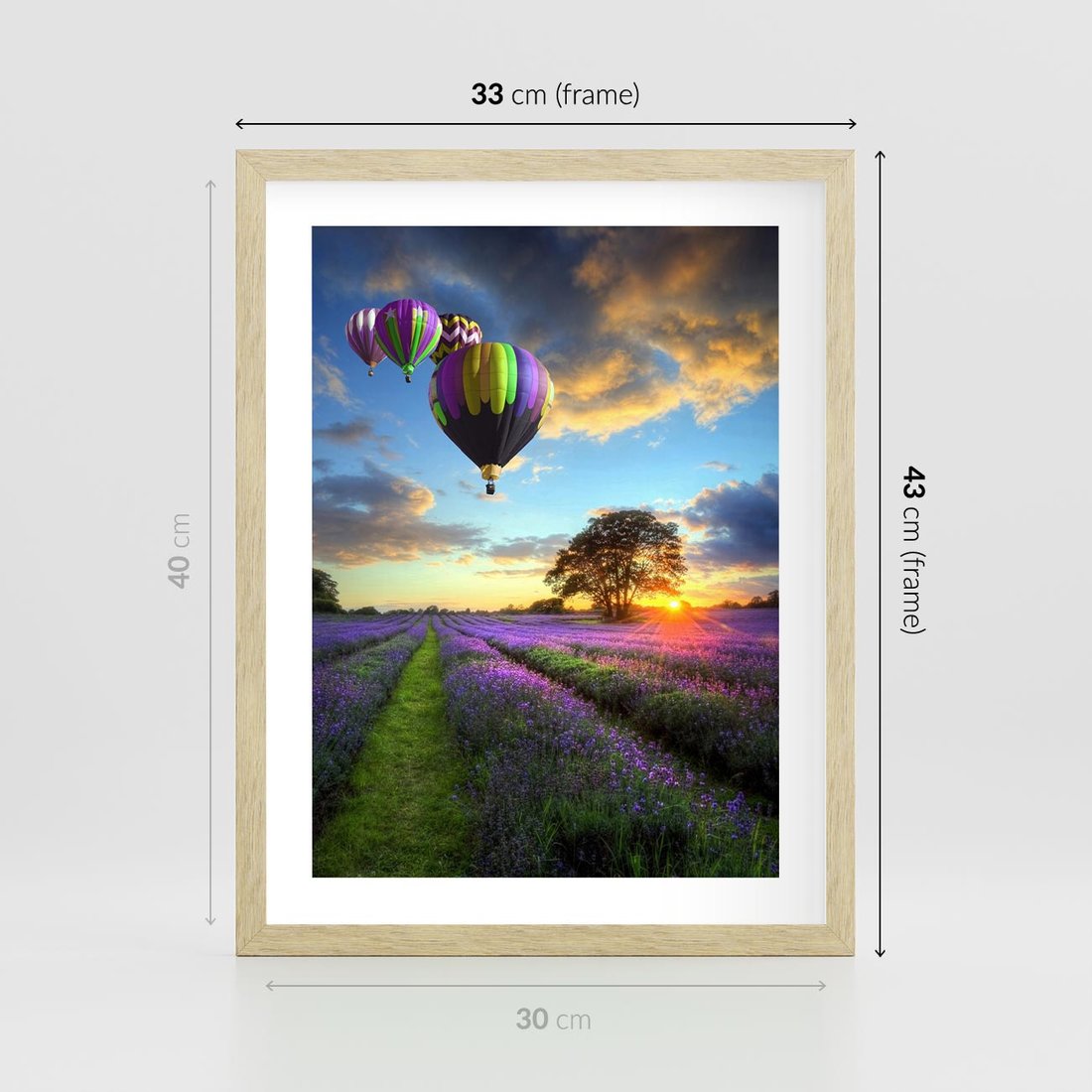 Plakat w ramie 30x40 - Lawendowe Marzenia - lawenda, balony - rama drewno