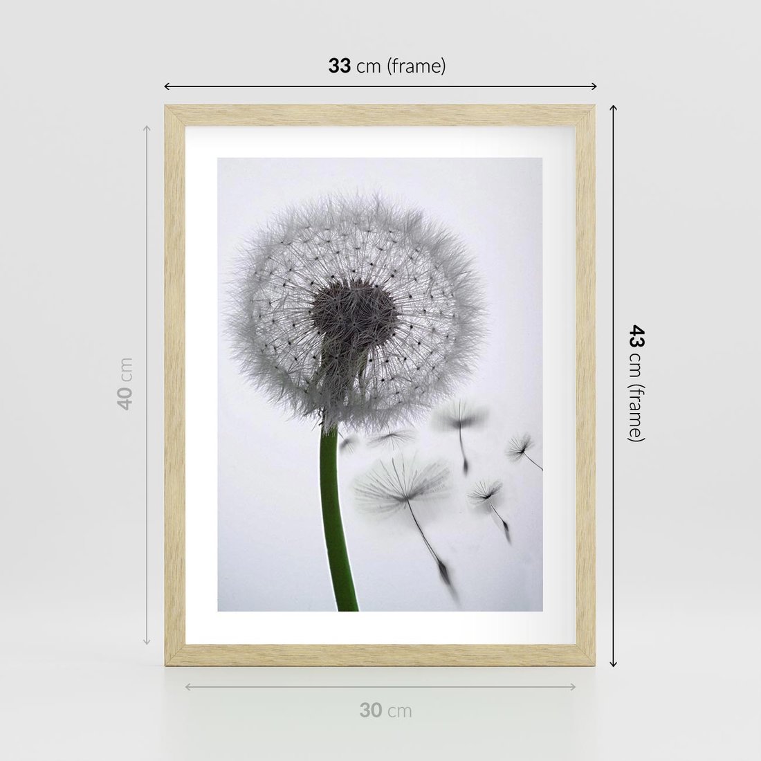 Plakat w ramie 30x40 - Lekkość Przemijania - dmuchawiec, makro - rama drewno