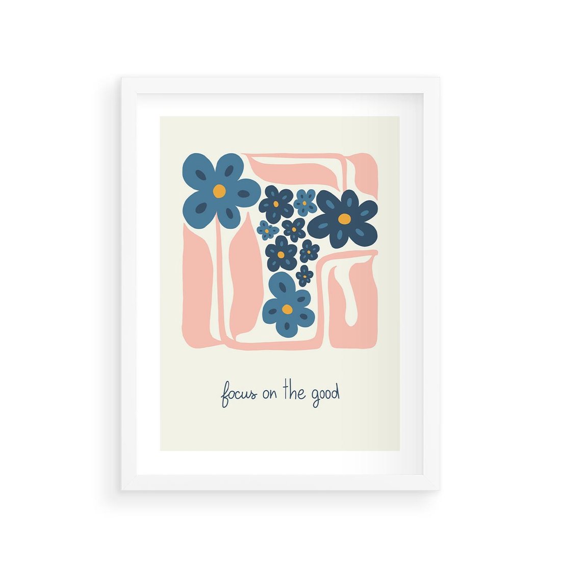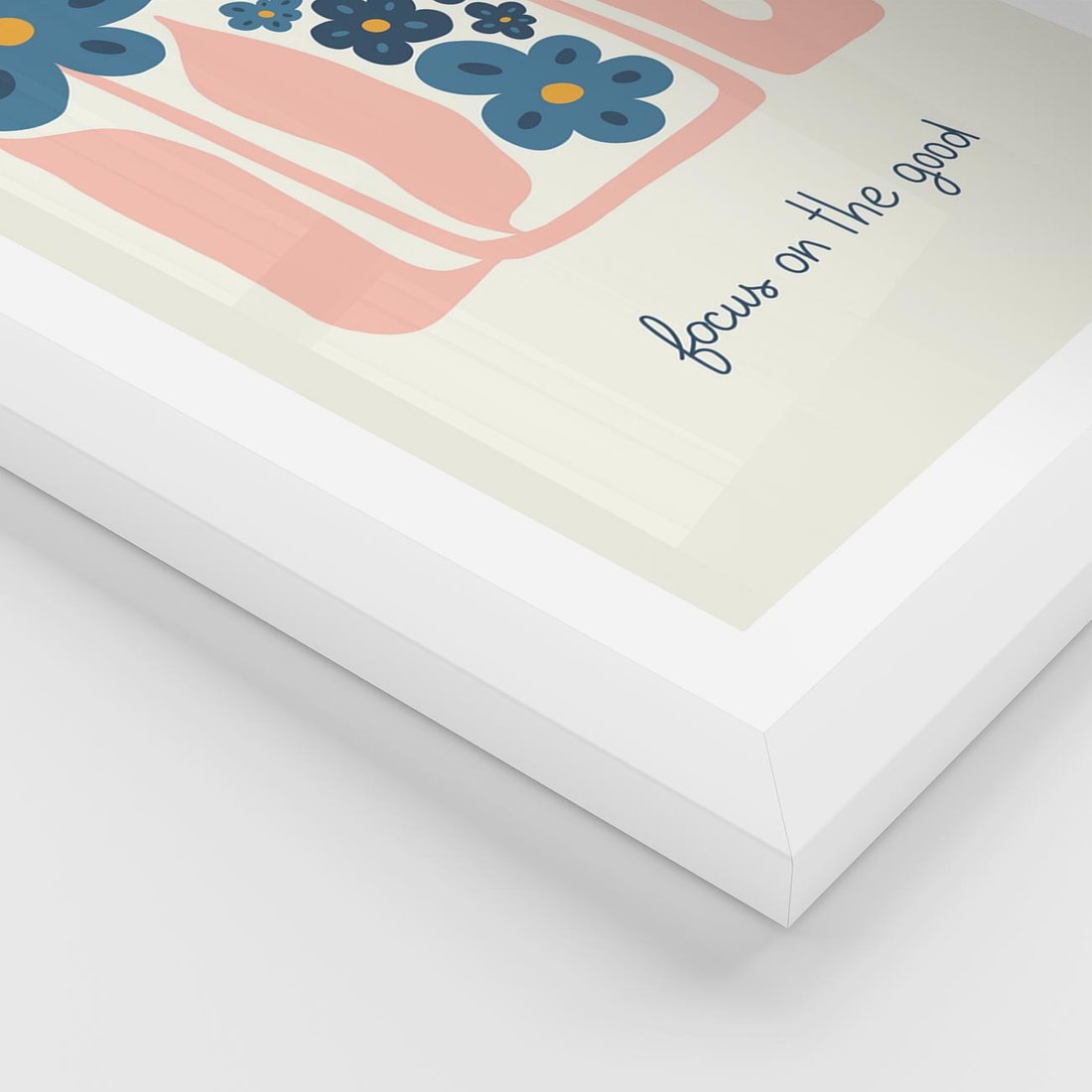 Ta minimalistyczna kwiatowa kompozycja w pastelowych kolorach tworzy spokojną i pozytywną afirmację. To harmonijne połączenie prostoty formy roślinnej z inspirującą typografią. Ten obraz wprowadzi subtelny akcent natury i pozytywnego myślenia do wnętrza, zachowując jednocześnie estetykę minimalistycznego piękna.