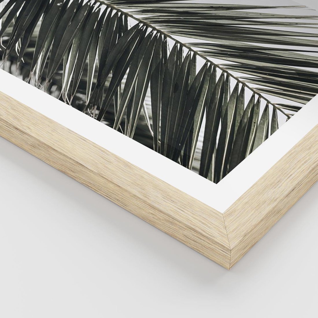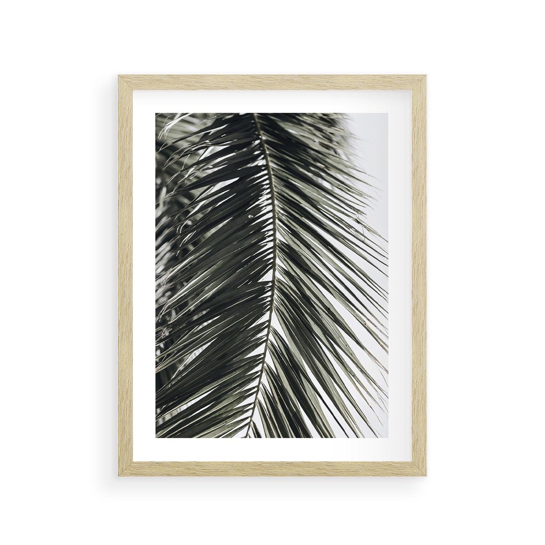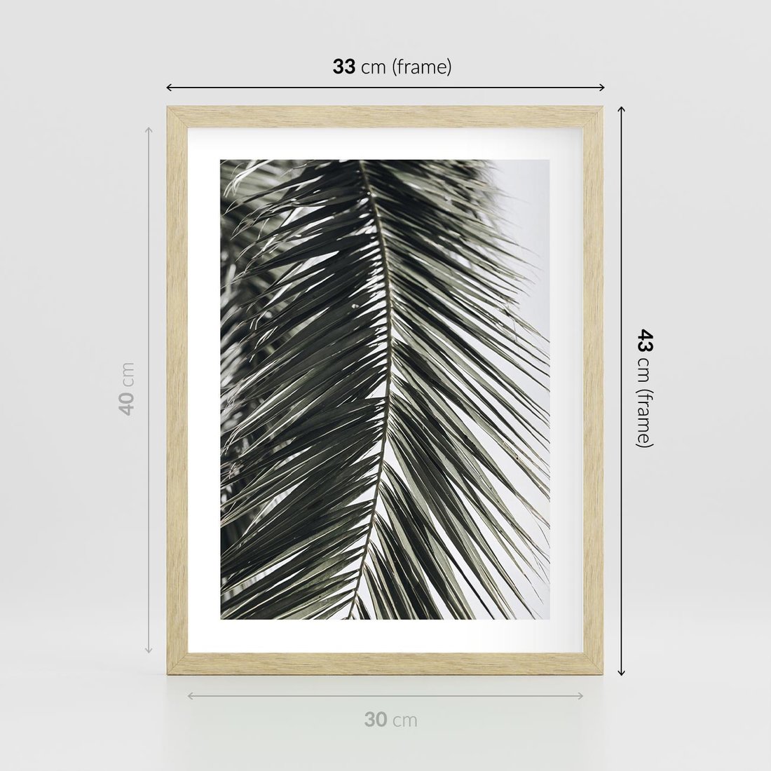 Plakat w ramie 30x40 - Liść Palmy: Egzotyczny Detal Natury - palma, liść palmy - rama drewno