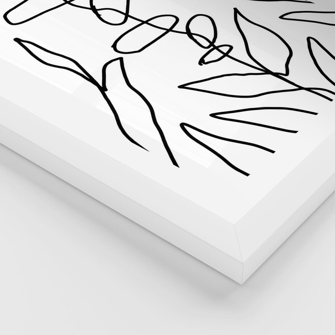 Czarny szkic liści na czystym białym tle tworzy mroczny minimalizm, nadając wnętrzu wyjątkowy charakter i wyrafinowaną estetykę.