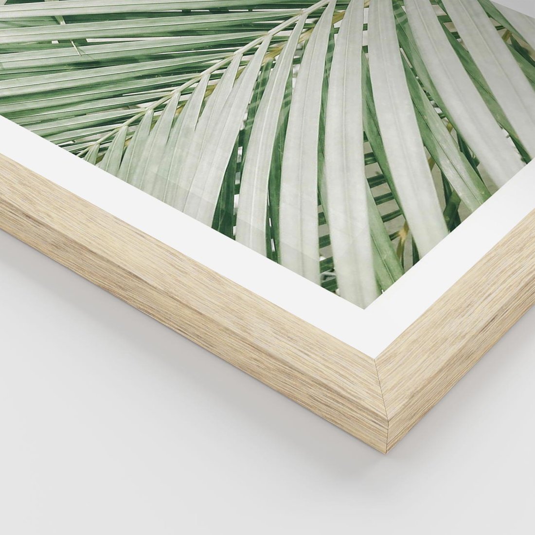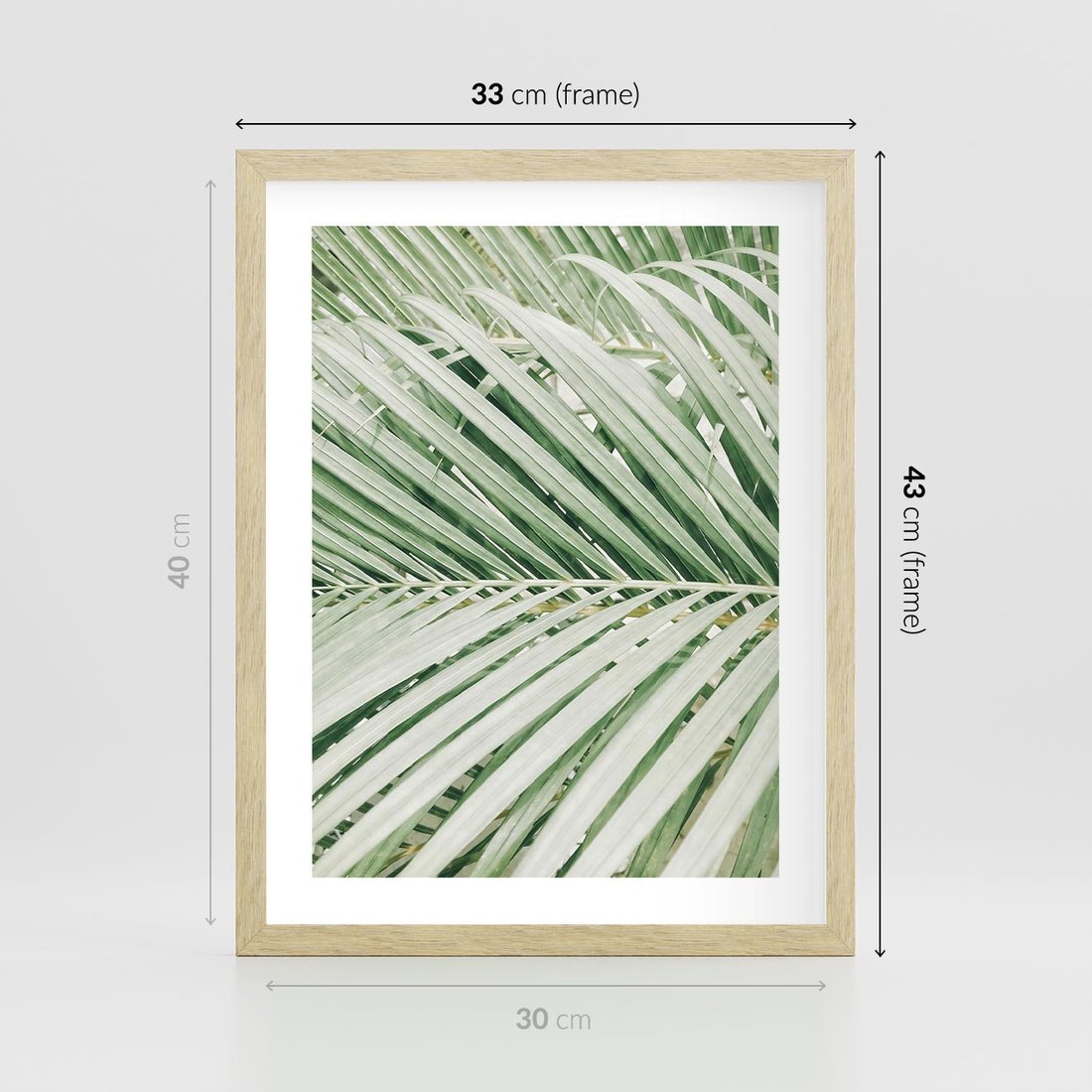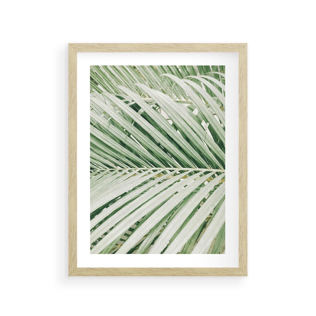 Plakat w ramie 30x40 - Liście Palmy: Egzotyczna Grafika - palma, liście palmy - rama drewno