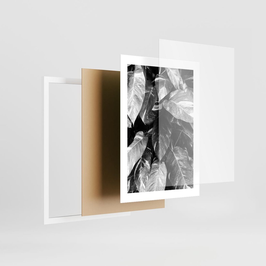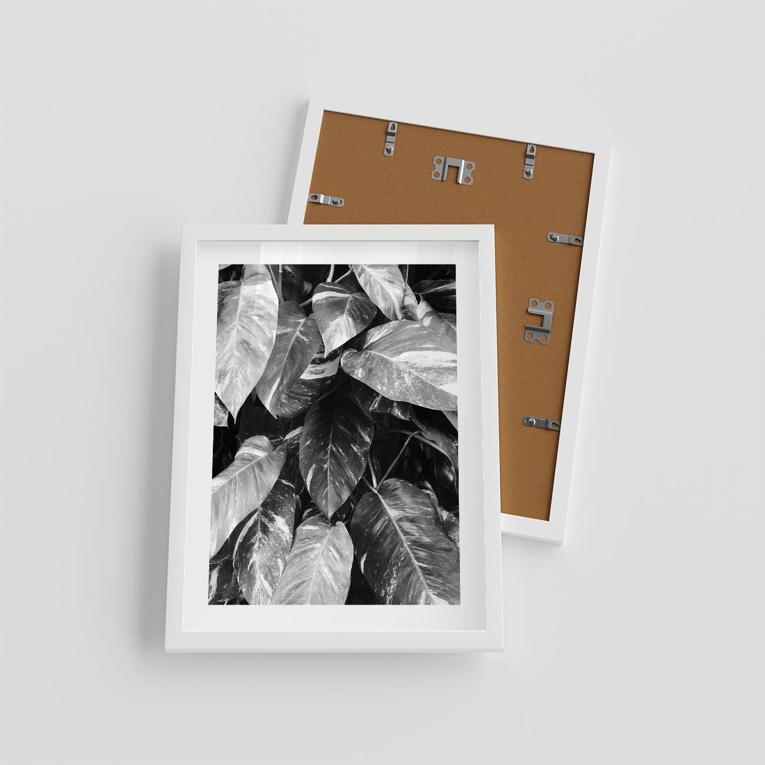 Plakat w ramie 30x40 - Liście w Czarno-Białej Fotografii - liście, roślina - rama biała