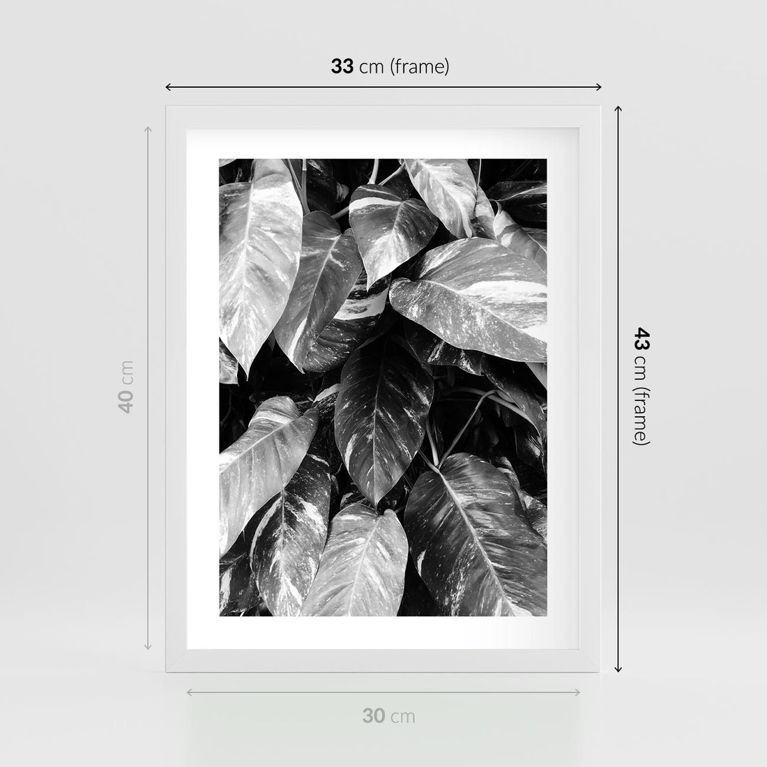 - Plakat w ramie 30x40 - Liście w Czarno-Białej Fotografii
