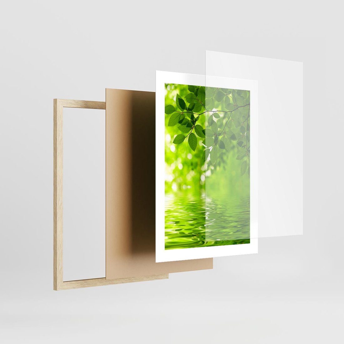Plakat w ramie 30x40 - Liście w Wodzie - liście, woda - rama drewno