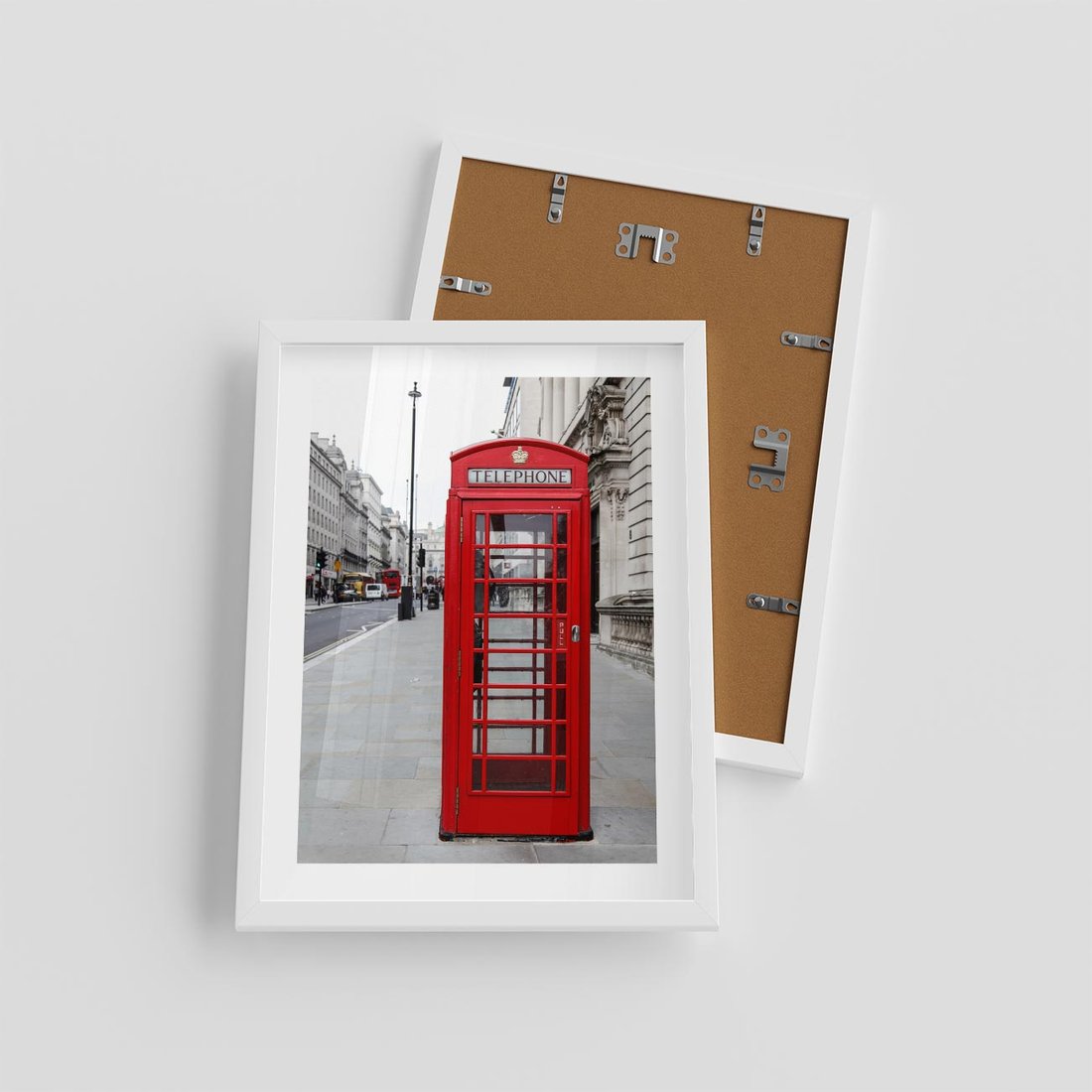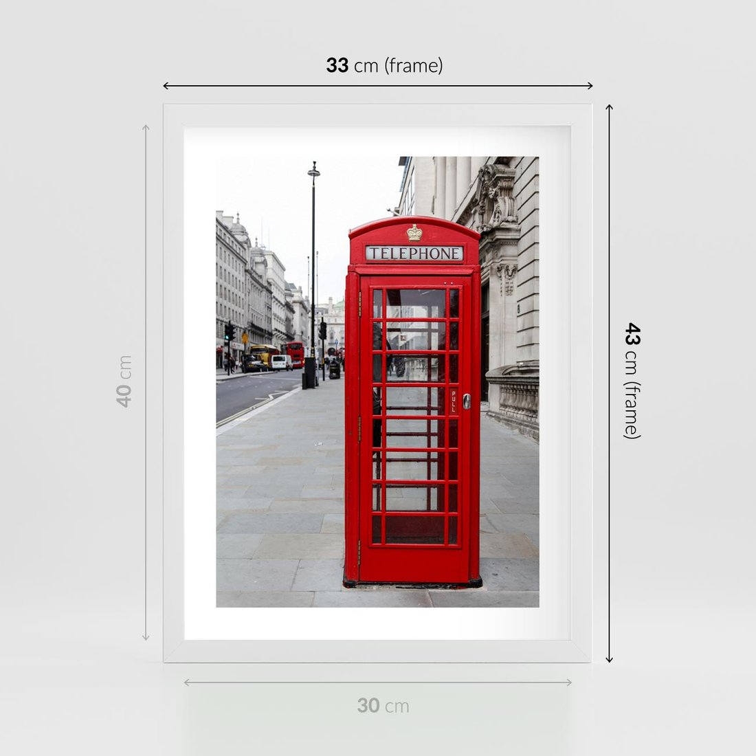 Plakat w ramie 30x40 - Londyńska budka w perspektywie - budka, Londyn - rama biała
