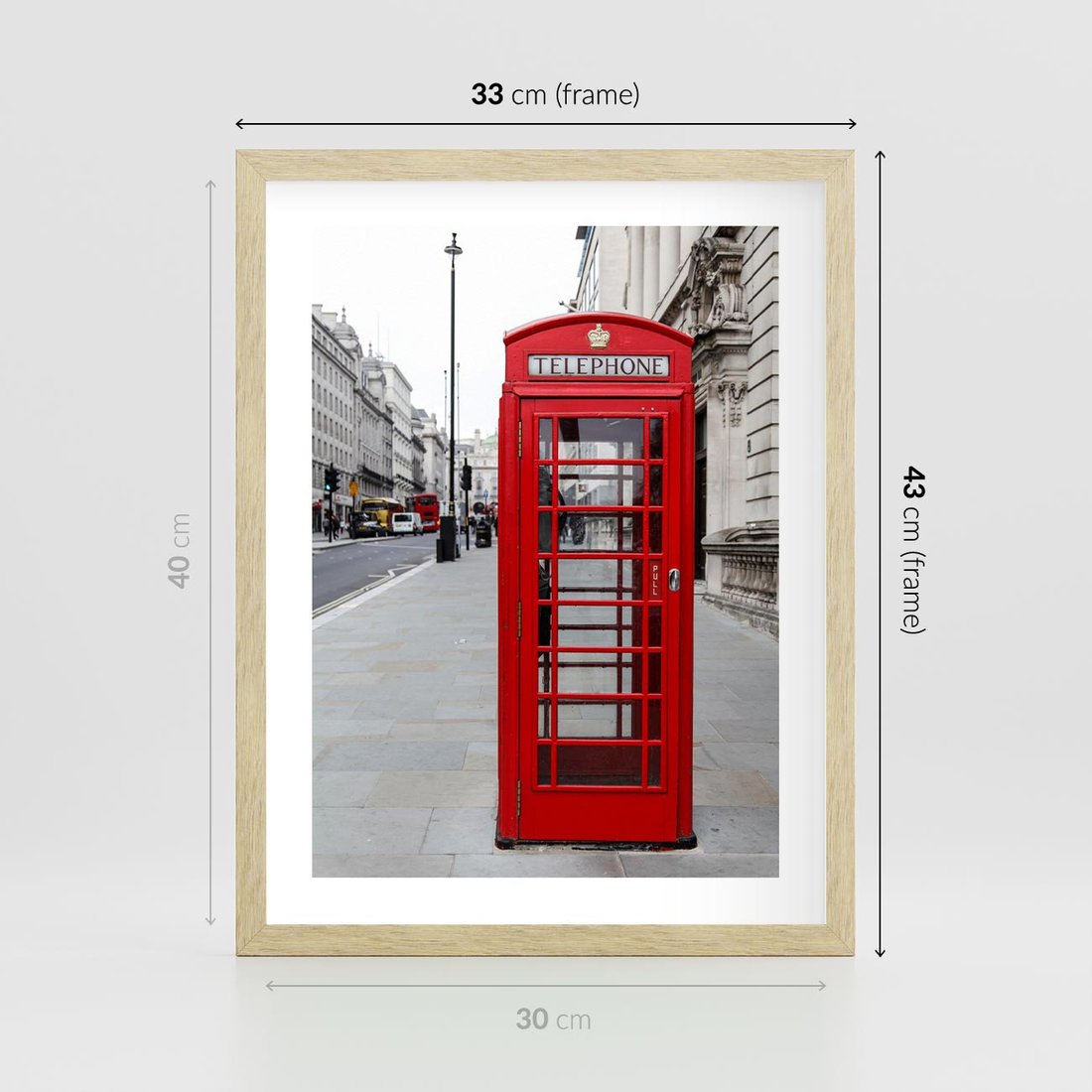 Plakat w ramie 30x40 - Londyńska budka w perspektywie - budka, Londyn - rama drewno