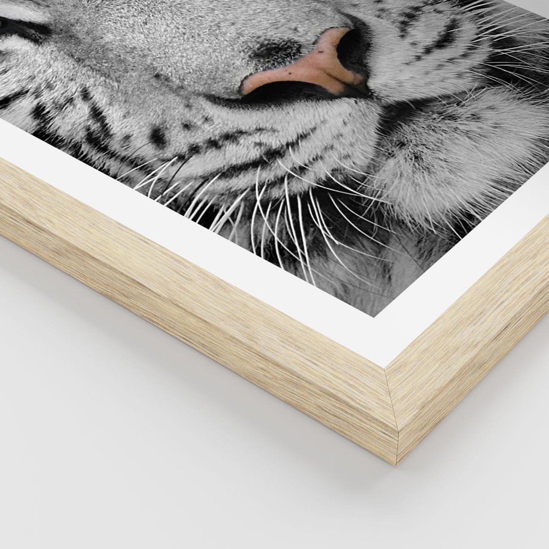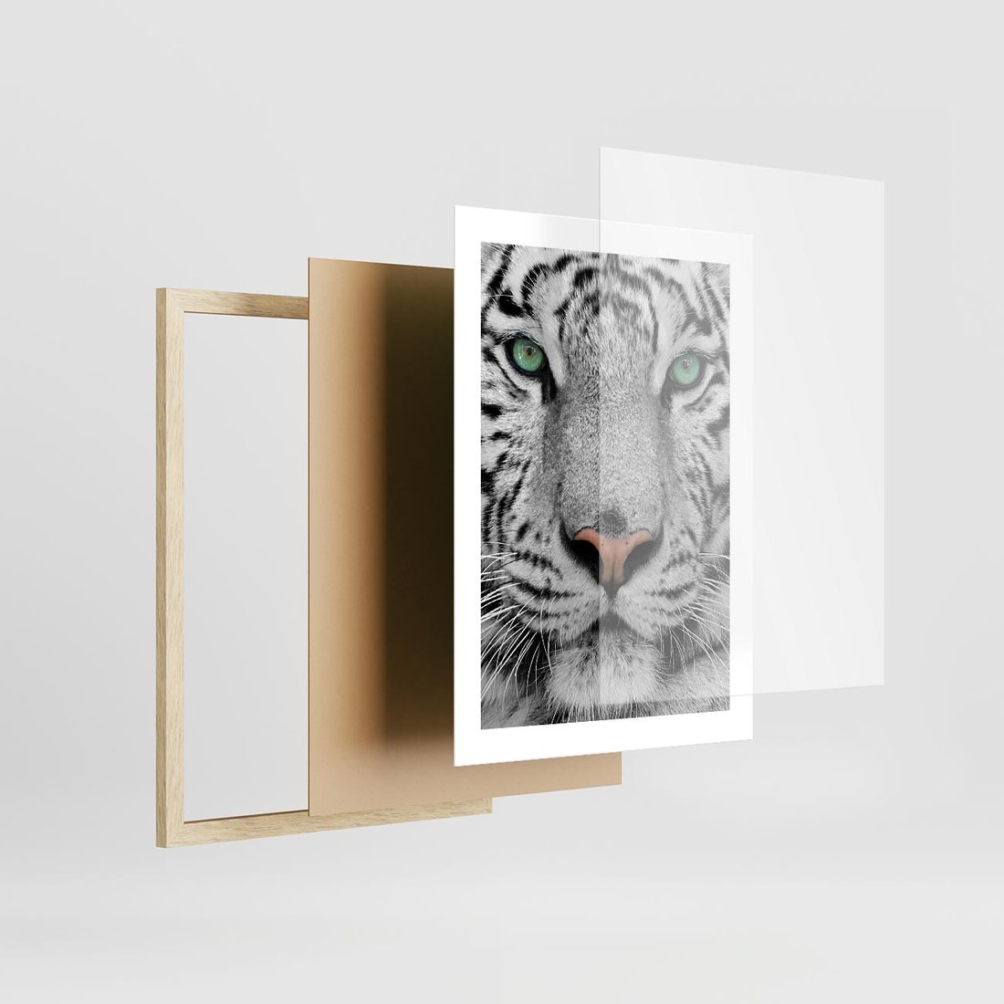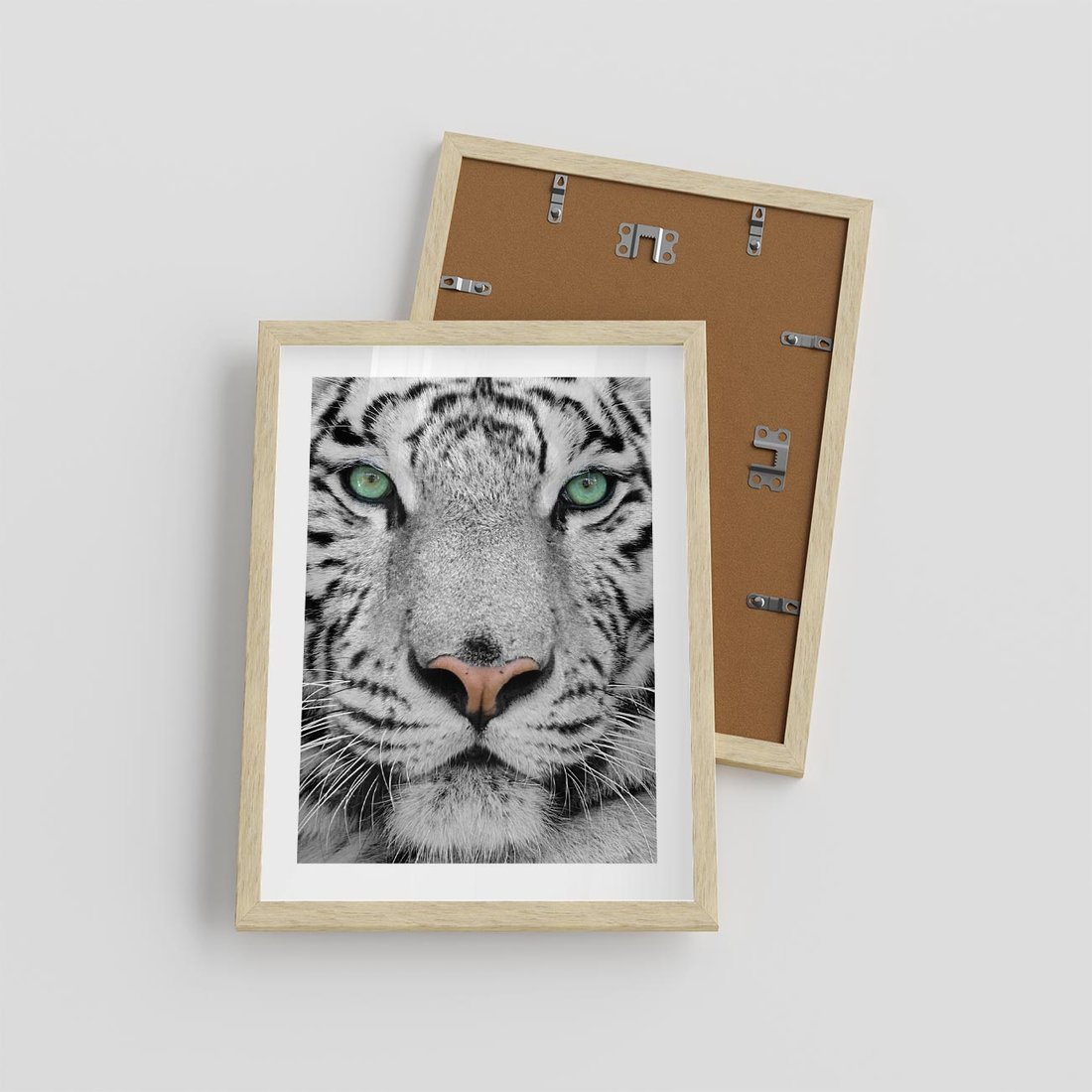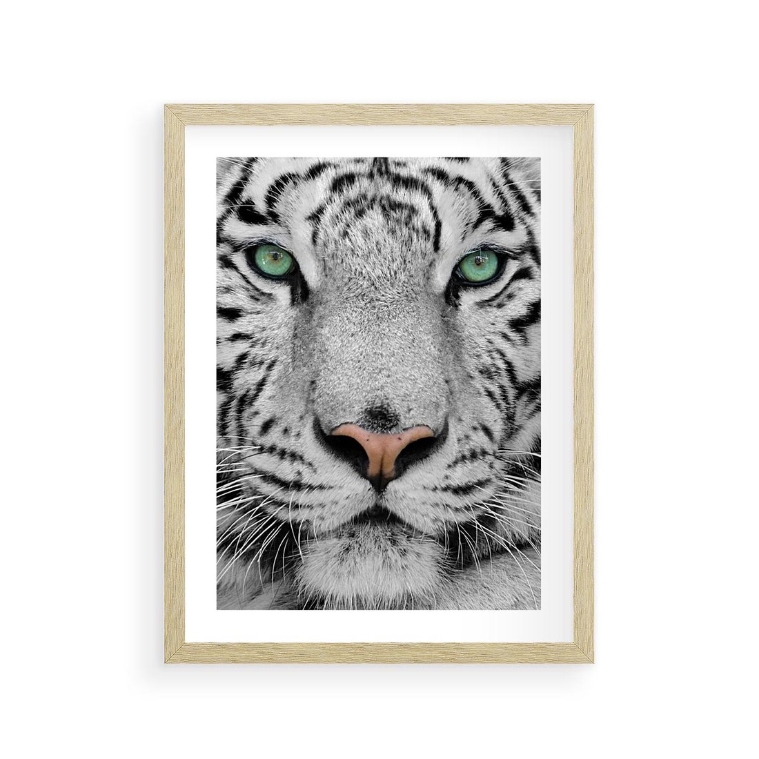 Plakat w ramie 30x40 - Magia Białego Tygrysa - biały, tygrys - rama drewno