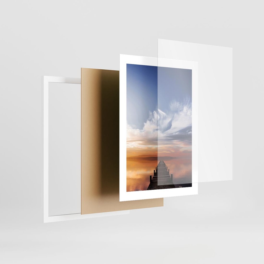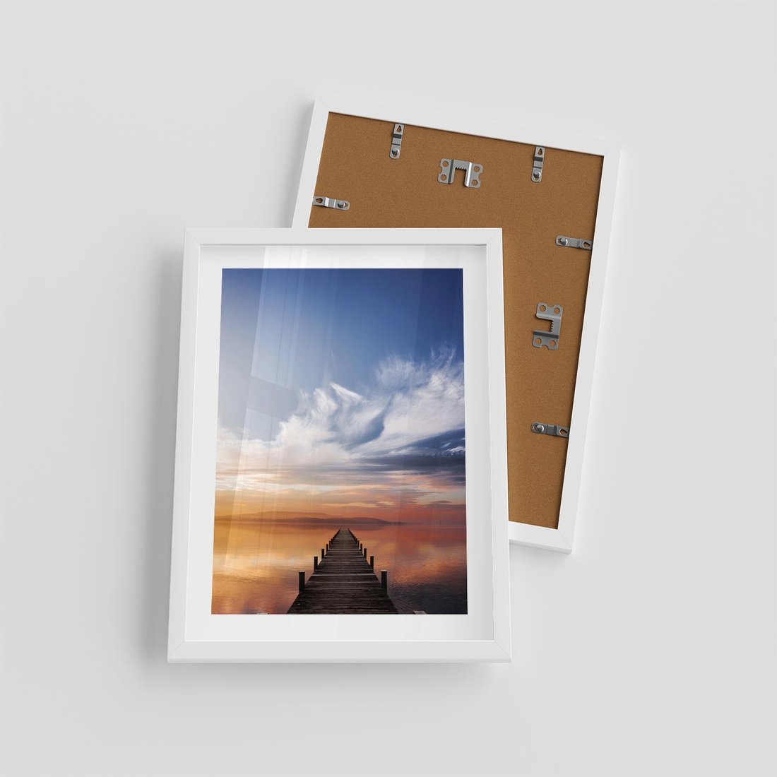 Plakat w ramie 30x40 - Magia Chwili - pomost, zachód - rama biała