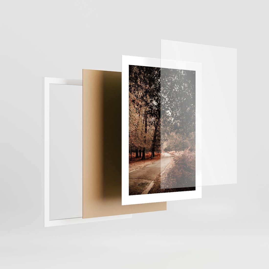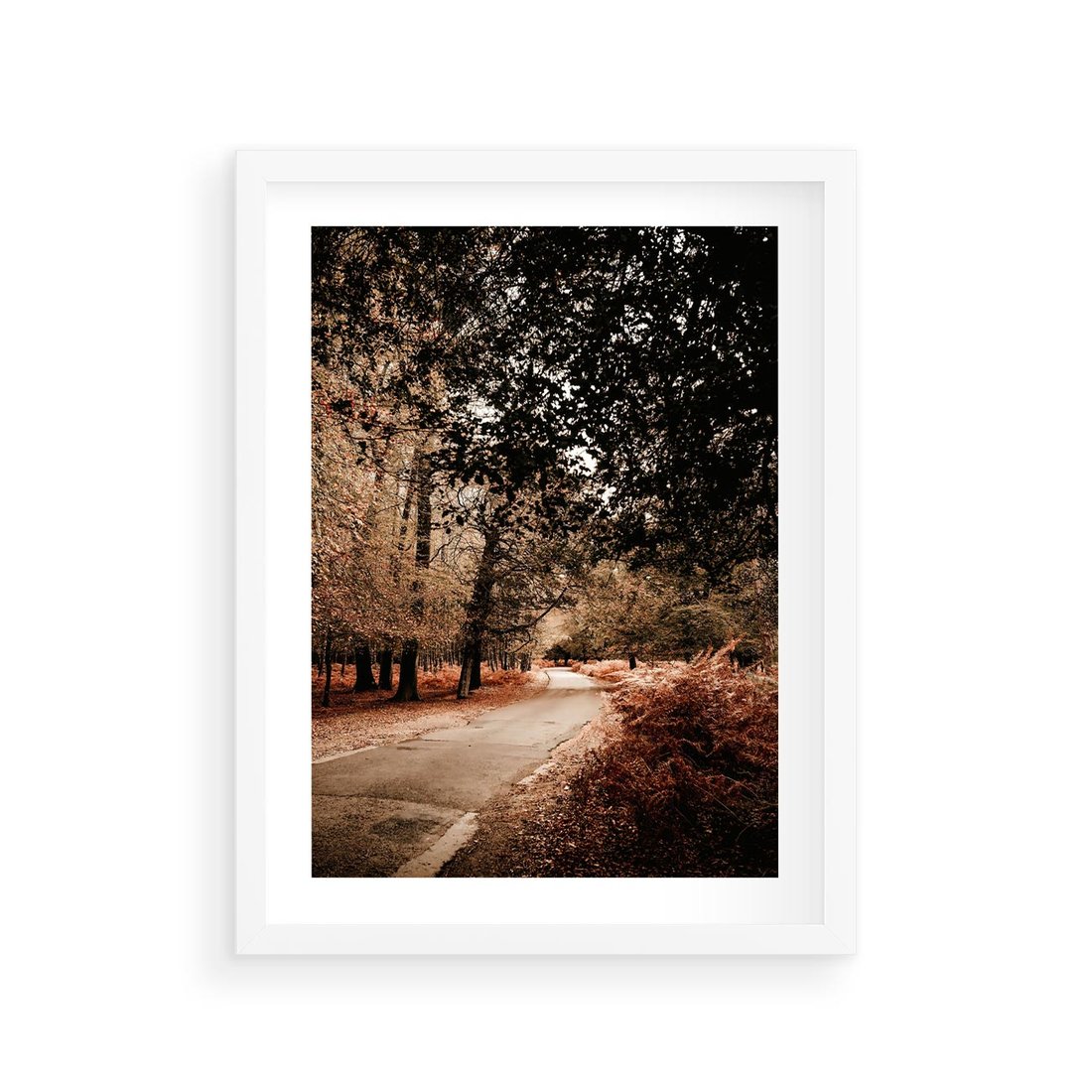 Plakat w ramie 30x40 - Magia Jesieni: Pejzaż Parku w Odcieniach Żółci - jesień, park - rama biała