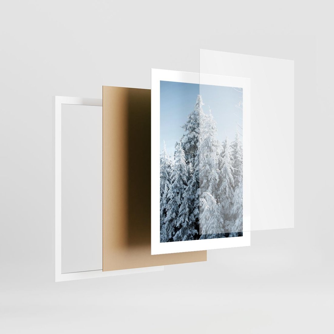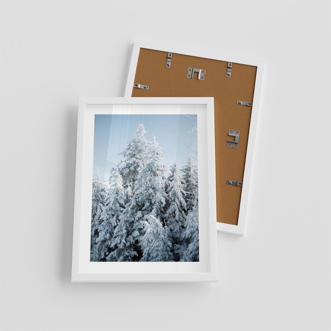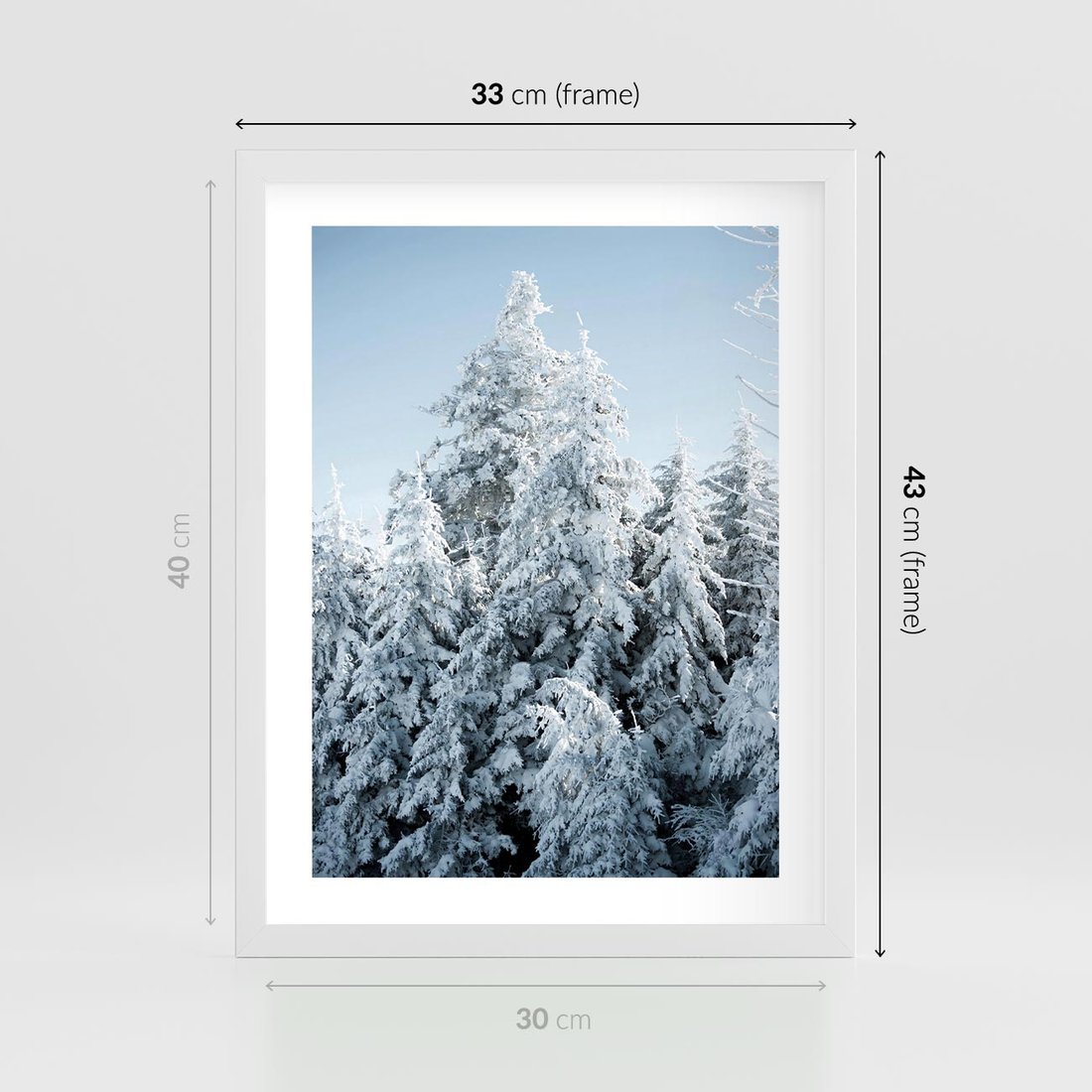 Plakat w ramie 30x40 - Magia Śnieżnych Drzew - zima, iglaste drzewa - rama biała