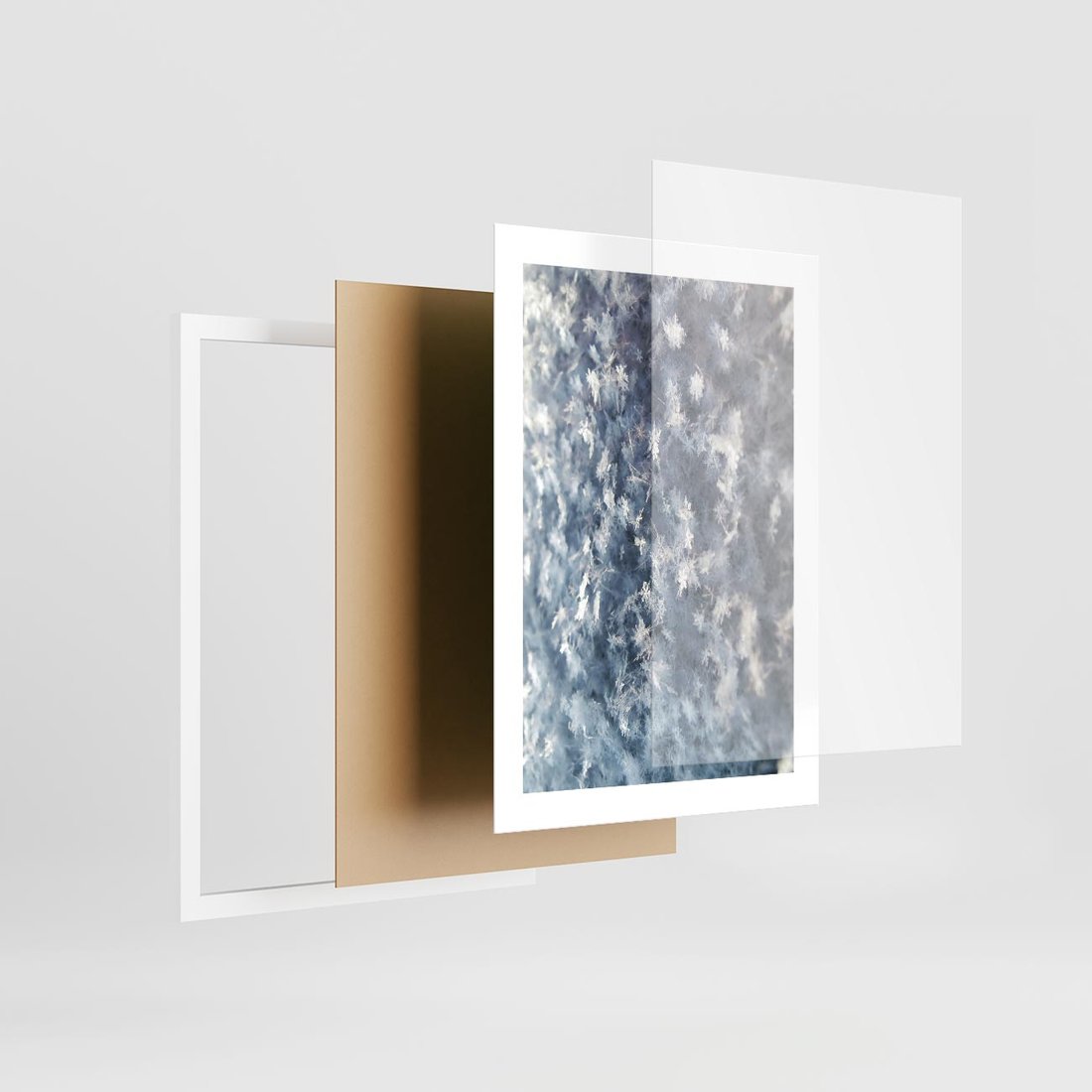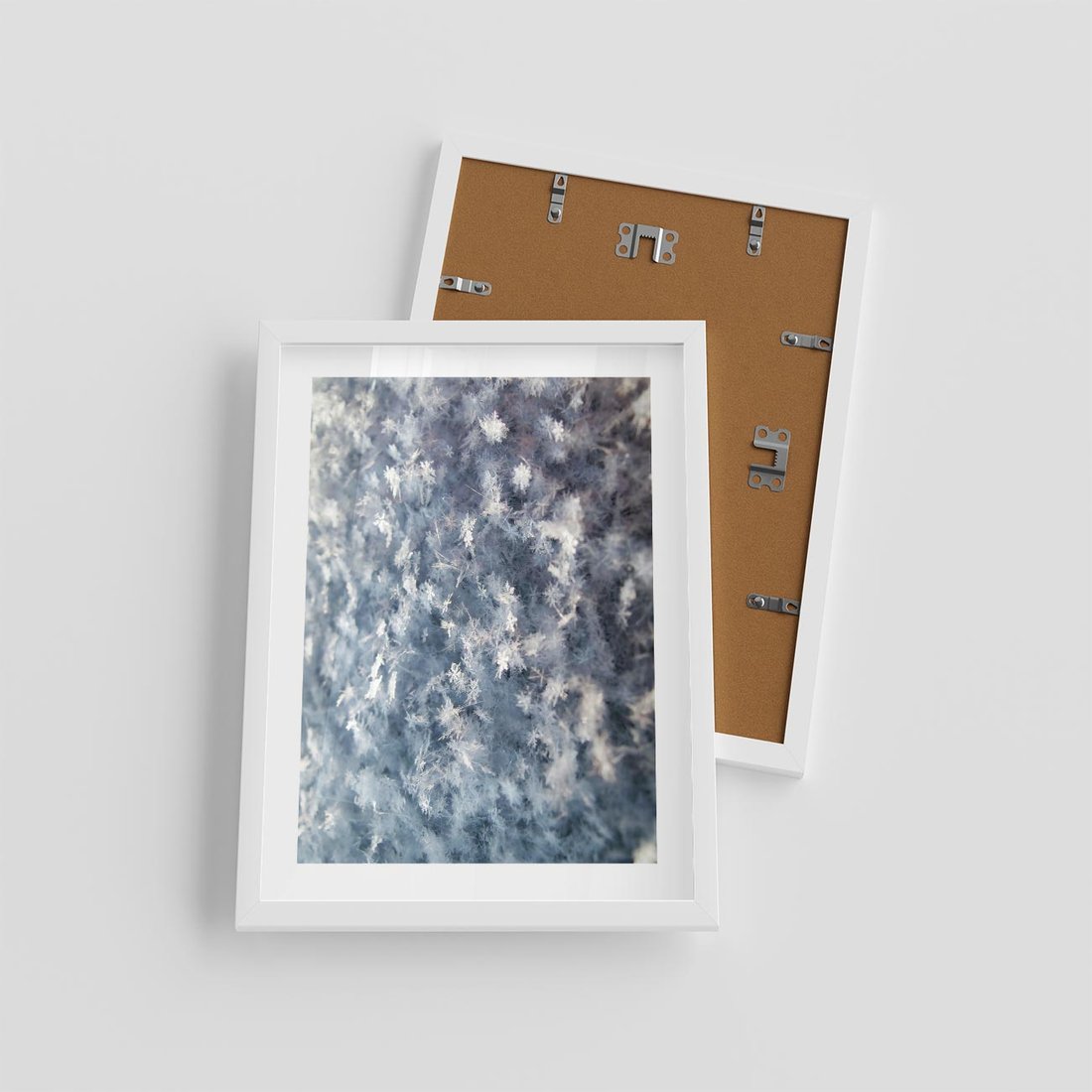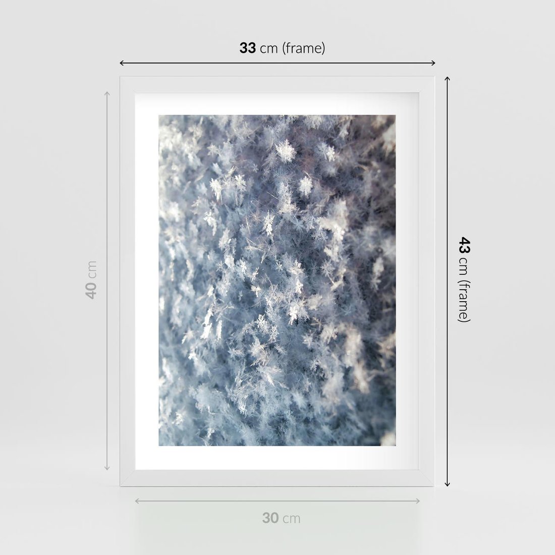 Plakat w ramie 30x40 - Magia Śnieżnych Kryształków - śnieg, szron - rama biała