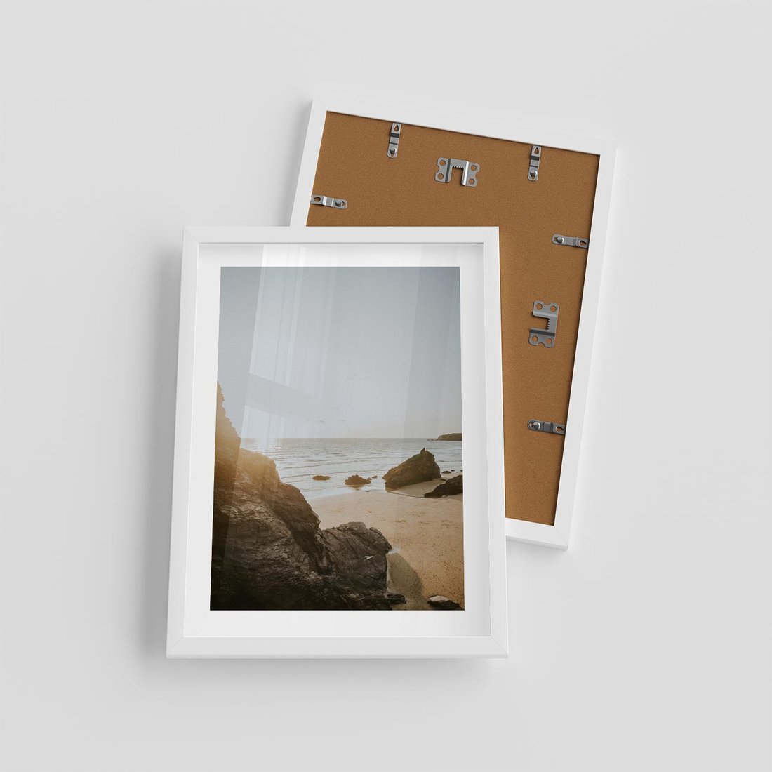 Plakat w ramie 30x40 - Magia Wieczornego Spokoju - plaża, zachód - rama biała