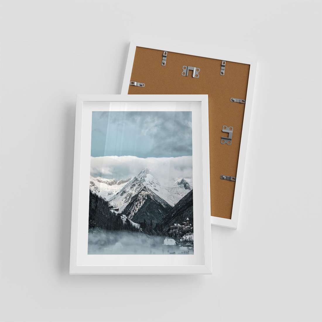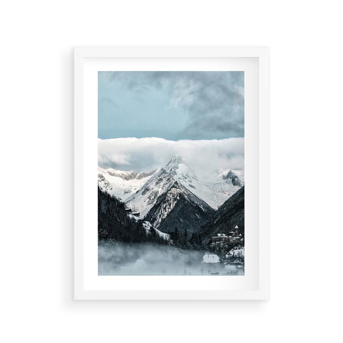 Plakat w ramie 30x40 - Magia Zimy w Górach - góry, śnieg - rama biała