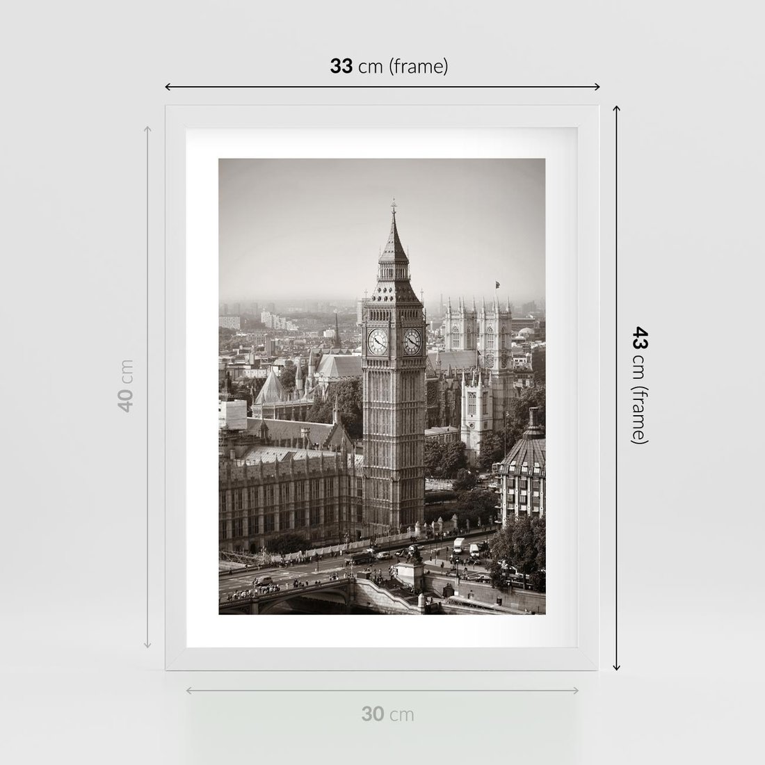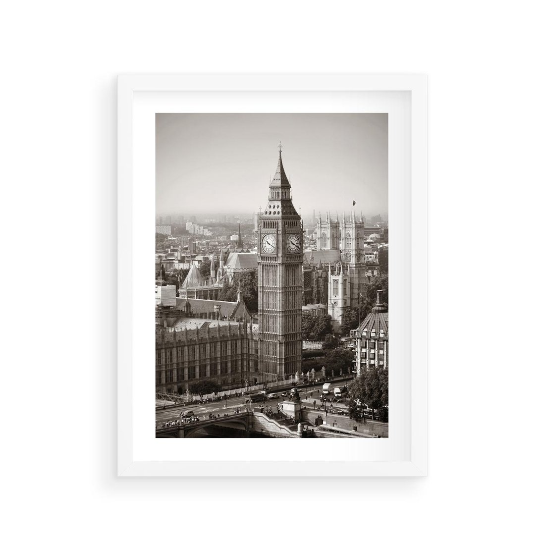 Plakat w ramie 30x40 - Magiczna esencja Londynu: Big Ben i miasto - Big Ben, Londyn - rama biała