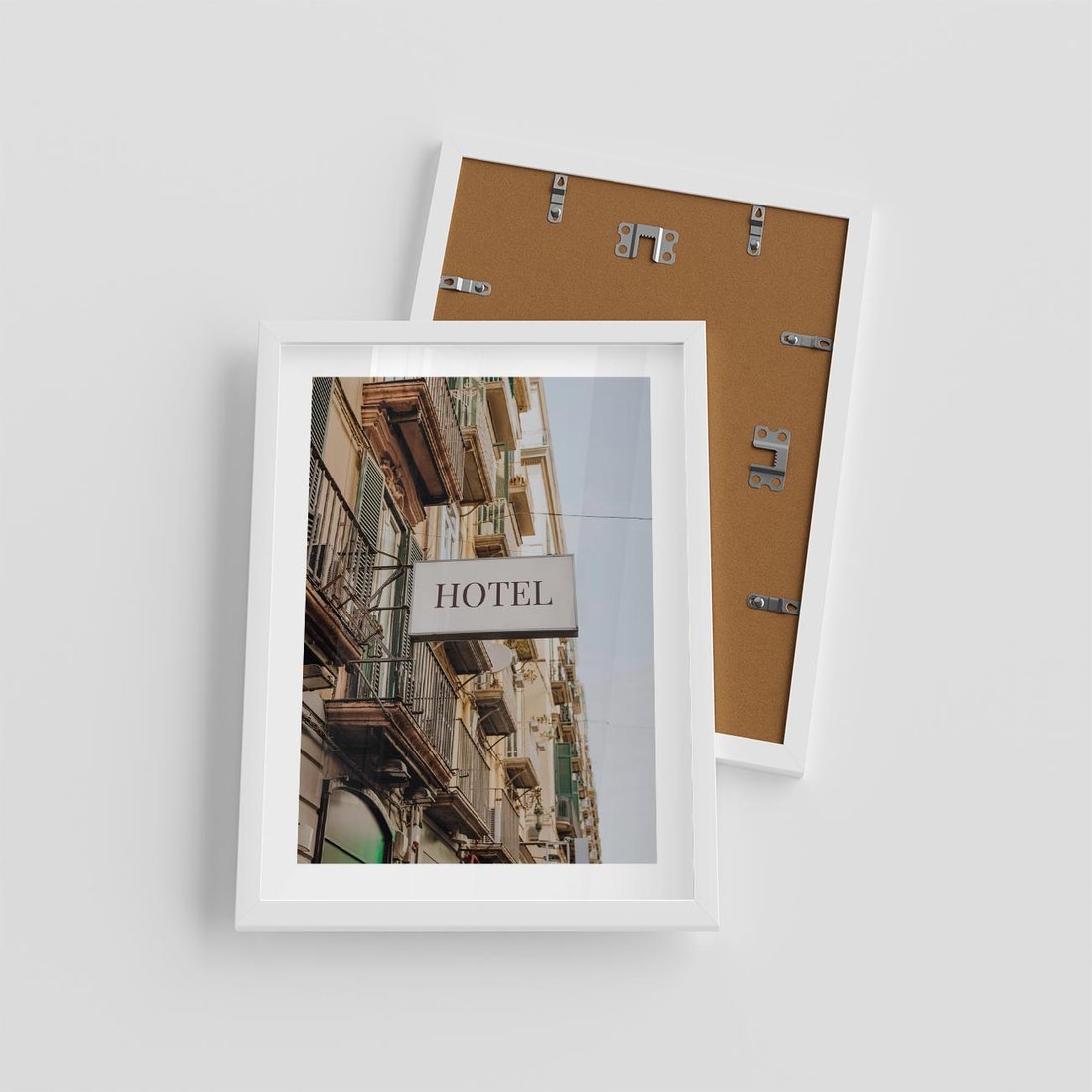 Plakat w ramie 30x40 - Magiczne Spacery - hotel, uliczka - rama biała