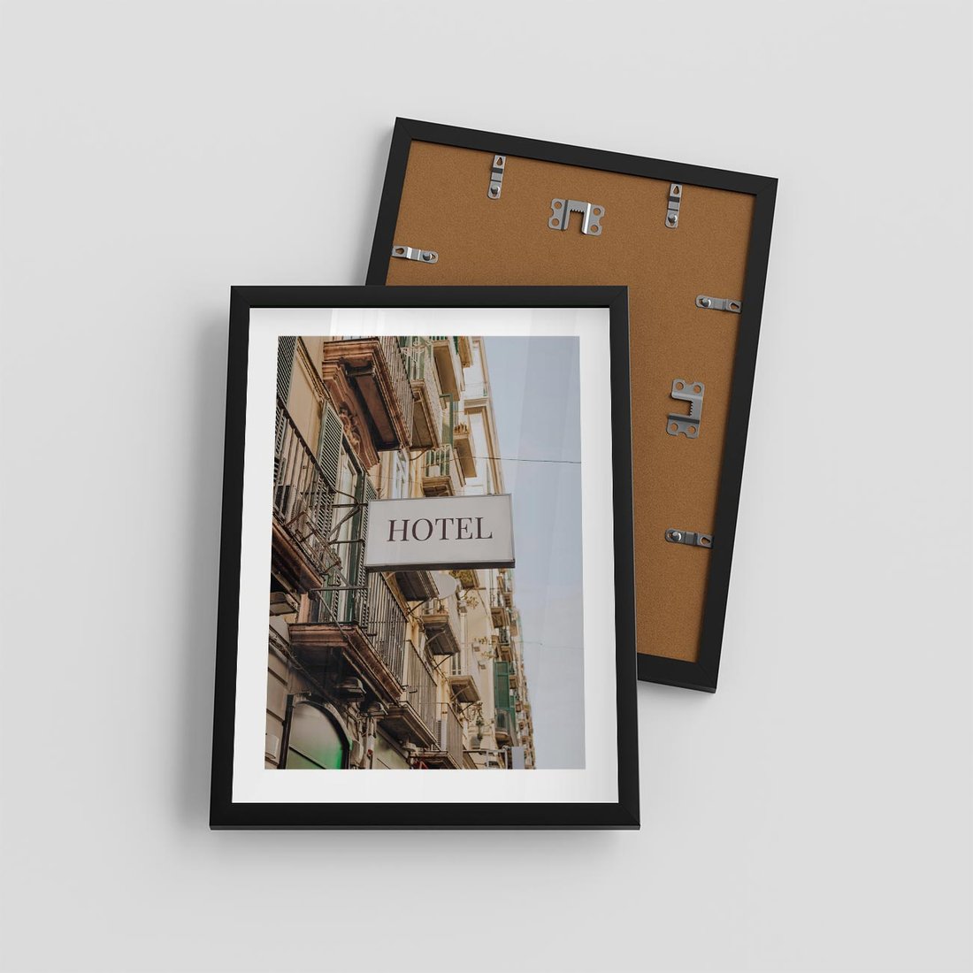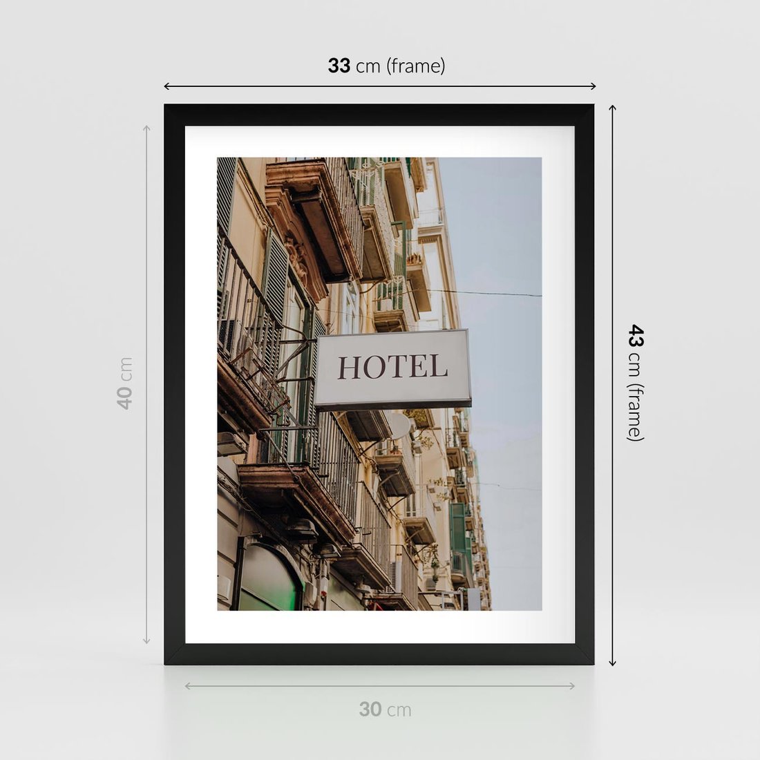 Plakat w ramie 30x40 - Magiczne Spacery - hotel, uliczka - rama czarna