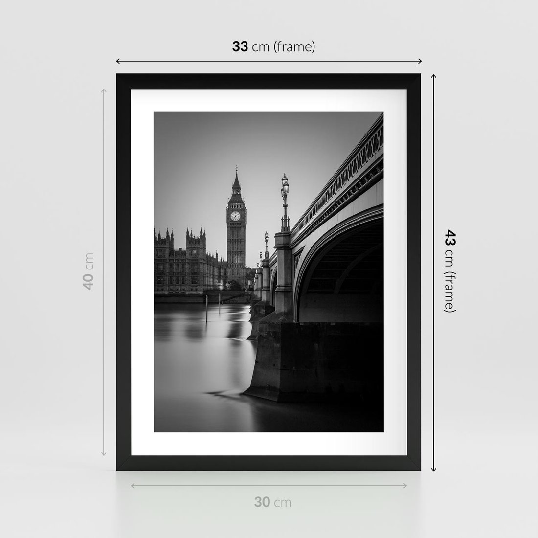 Plakat w ramie 30x40 - Majestatyczny Big Ben w Londynie - Londyn, most - rama czarna