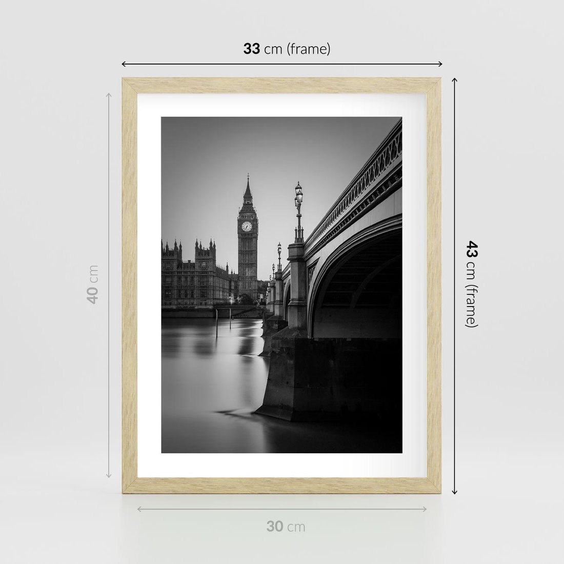 Plakat w ramie 30x40 - Majestatyczny Big Ben w Londynie - Londyn, most - rama drewno