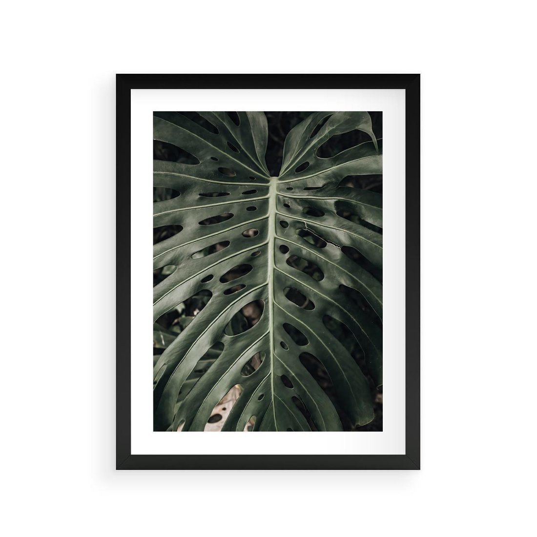 Plakat w ramie 30x40 - Majestatyczny Liść Monstery - liść monstery, majestatyczny liść - rama czarna