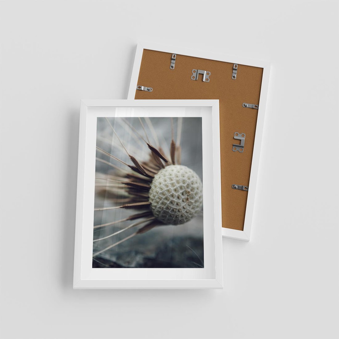 Plakat w ramie 30x40 - Makro Dmuchawiec - dmuchawiec, zbliżenie - rama biała