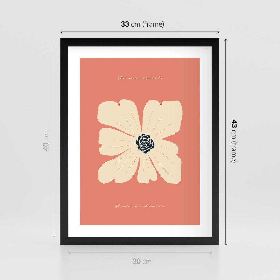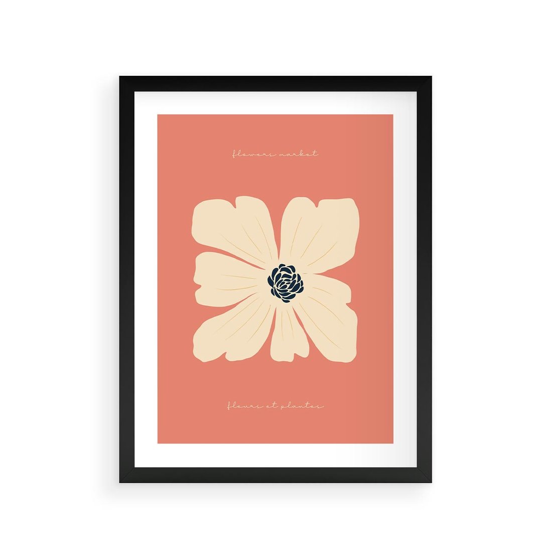 Plakat w ramie 30x40 - Malowane Kolorowe Echa - minimalistyczna grafika, biały kwiat na różowym tle - rama czarna