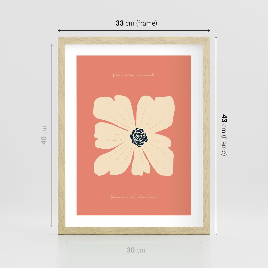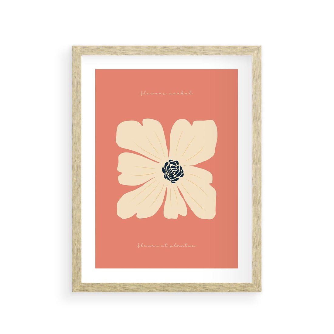 Plakat w ramie 30x40 - Malowane Kolorowe Echa - minimalistyczna grafika, biały kwiat na różowym tle - rama drewno