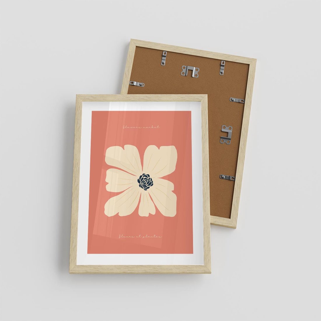 Ta minimalistyczna grafika przedstawia prostą i elegancką kompozycję: biały kwiat na różowym tle. To obraz, który wydobywa piękno w swojej prostocie, oddając esencję minimalistycznego designu. Doskonały wybór dla tych, którzy cenią estetykę oczyszczoną z zbędnych elementów.
