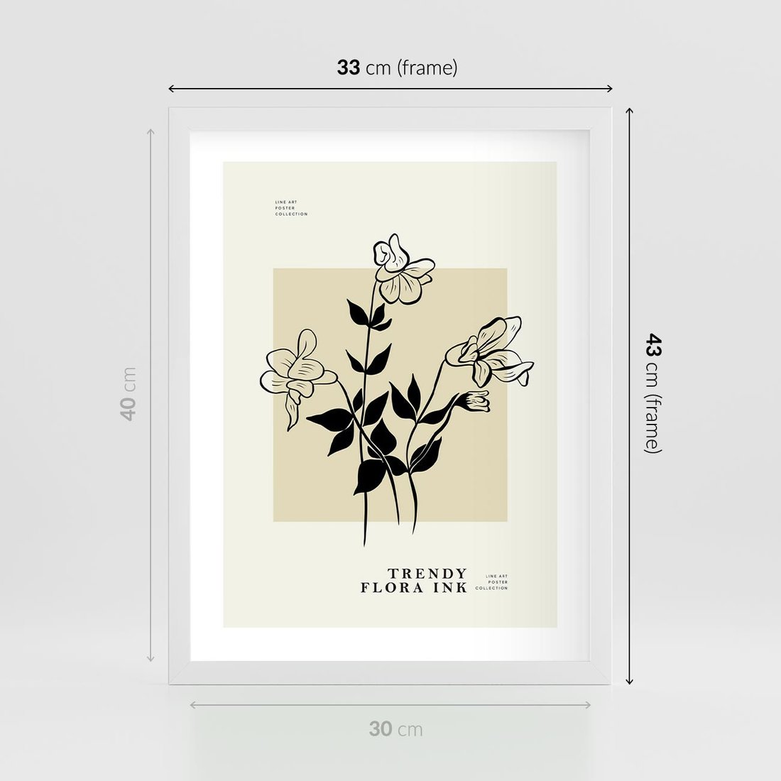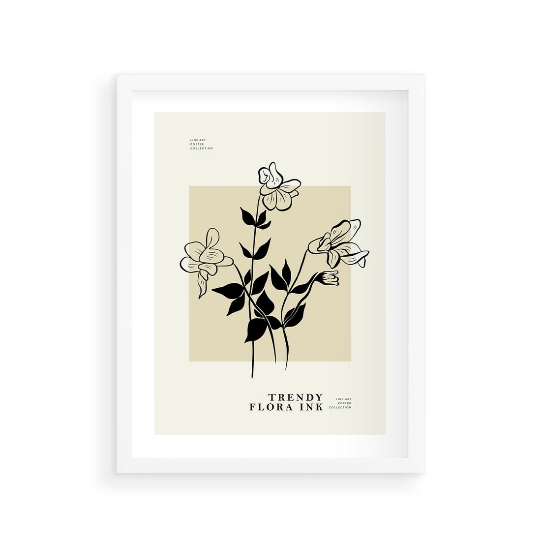 Piękne kwiaty w połączeniu z elegancką typografią tworzą minimalistyczną sztukę. Delikatny beżowy akcent dodaje subtelności całej kompozycji. To obraz, który wprowadzi do Twojego wnętrza przyjemny akcent roślinności, zachowując jednocześnie estetykę minimalizmu.