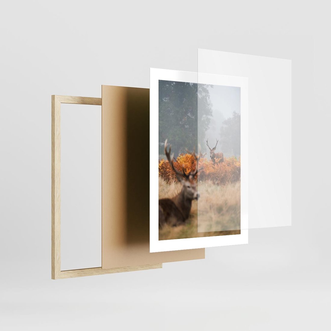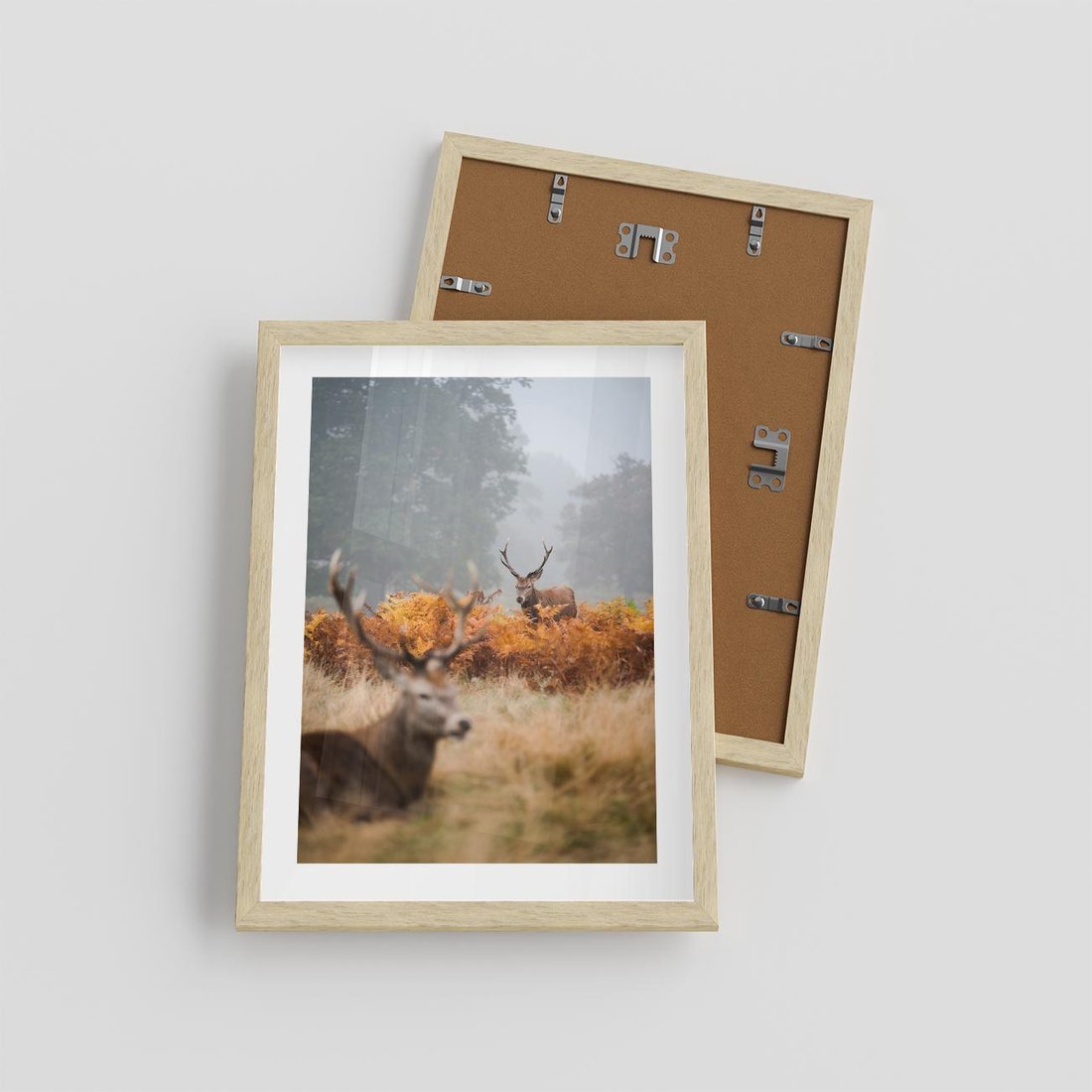 Plakat w ramie 30x40 - Malownicza Harmonia - jelenie, jesień - rama drewno