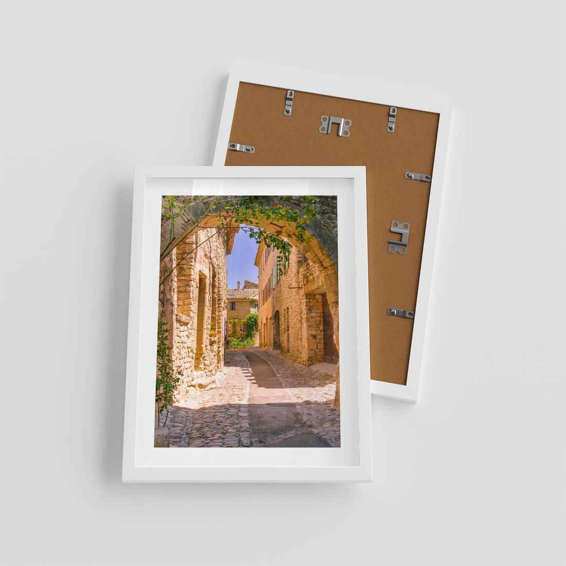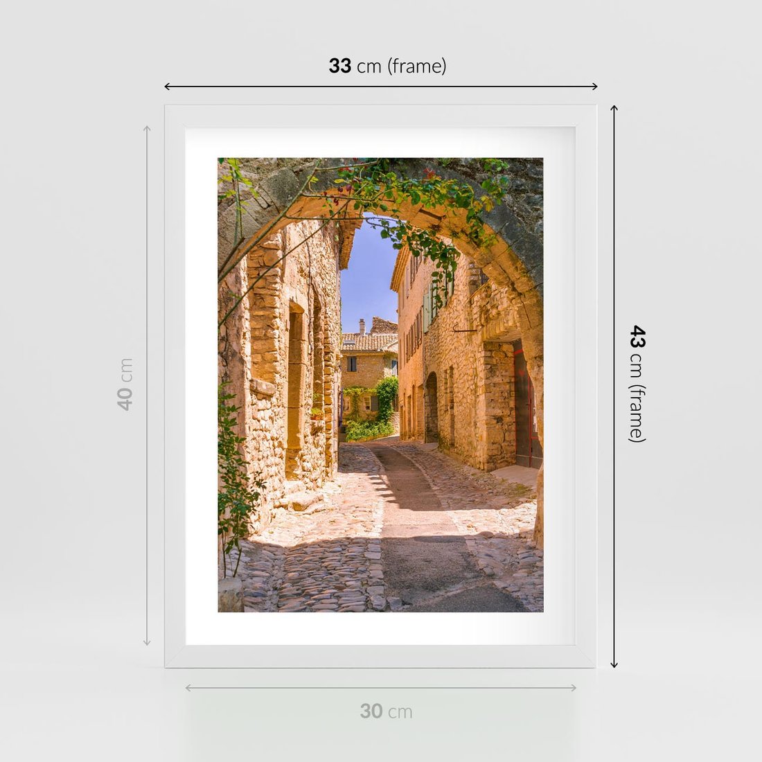 Plakat w ramie 30x40 - Malownicza uliczka w perspektywie - uliczka, perspektywa - rama biała