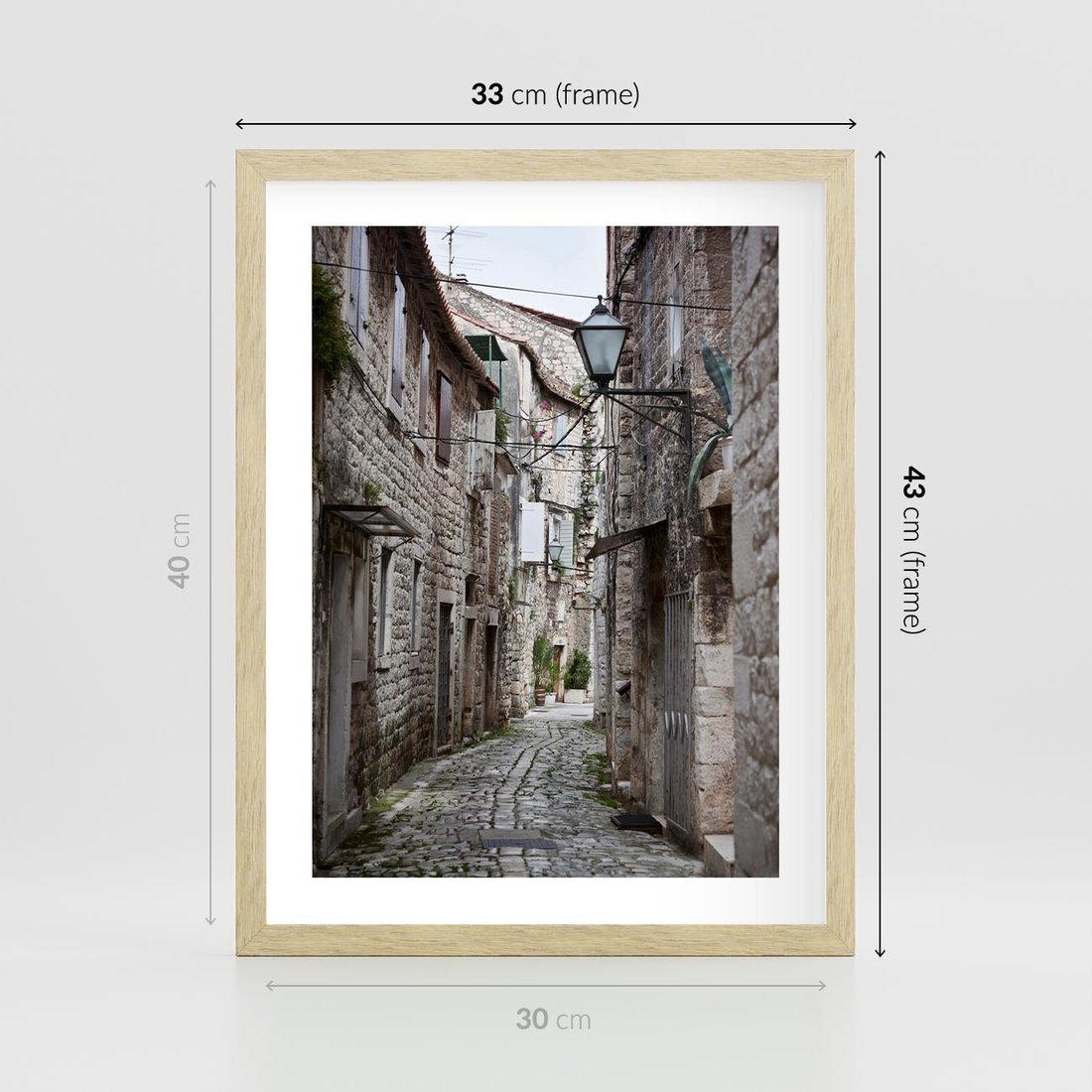 Plakat w ramie 30x40 - Malownicza uliczka we Włoszech - uliczka, Włoch - rama drewno