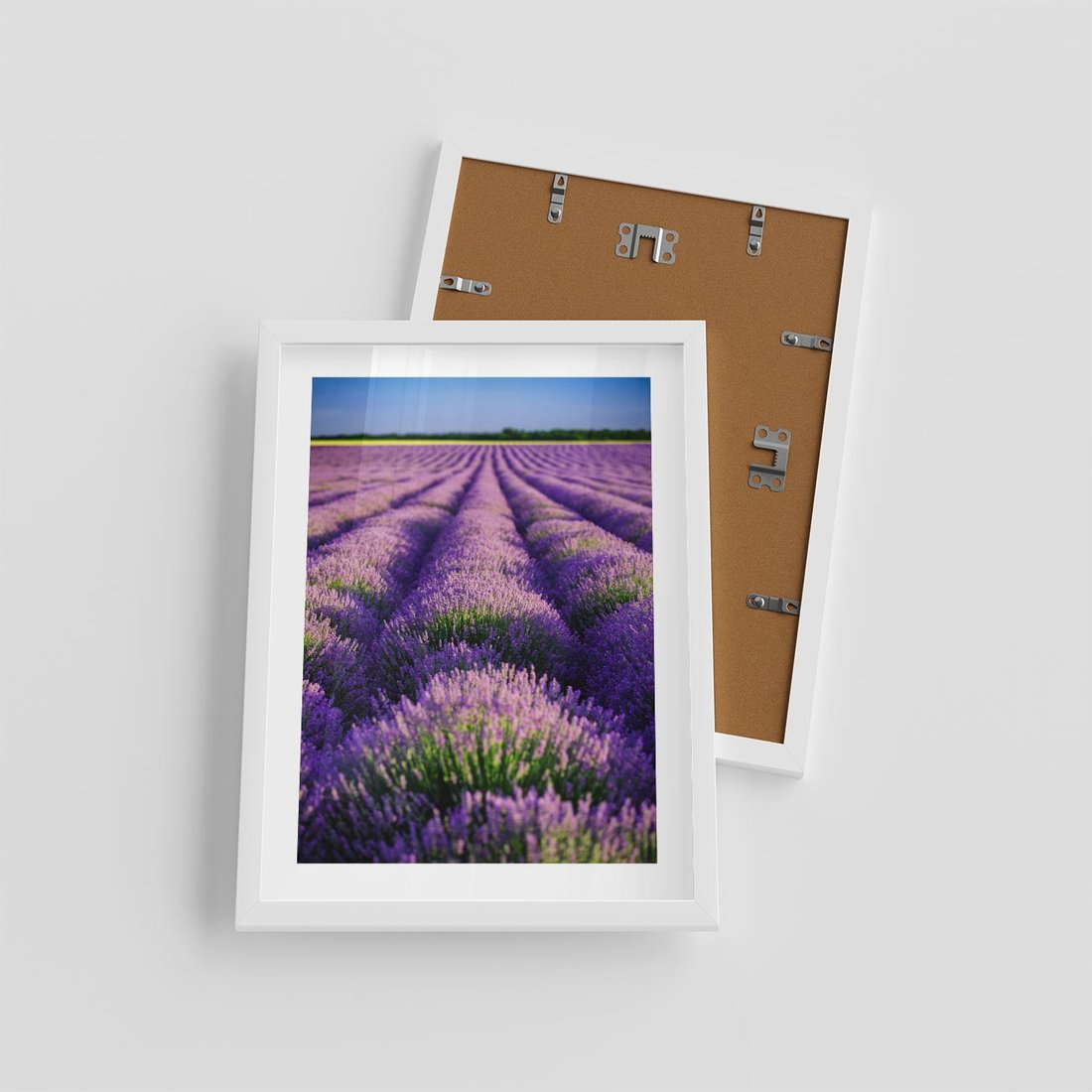 Plakat w ramie 30x40 - Malownicze Pole Lawendy - lawenda, pole - rama biała