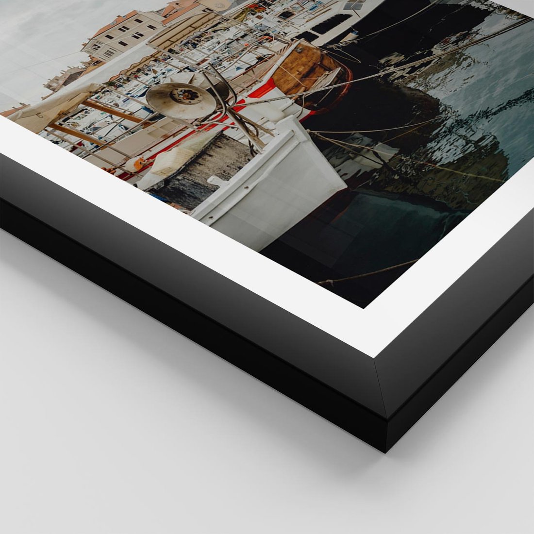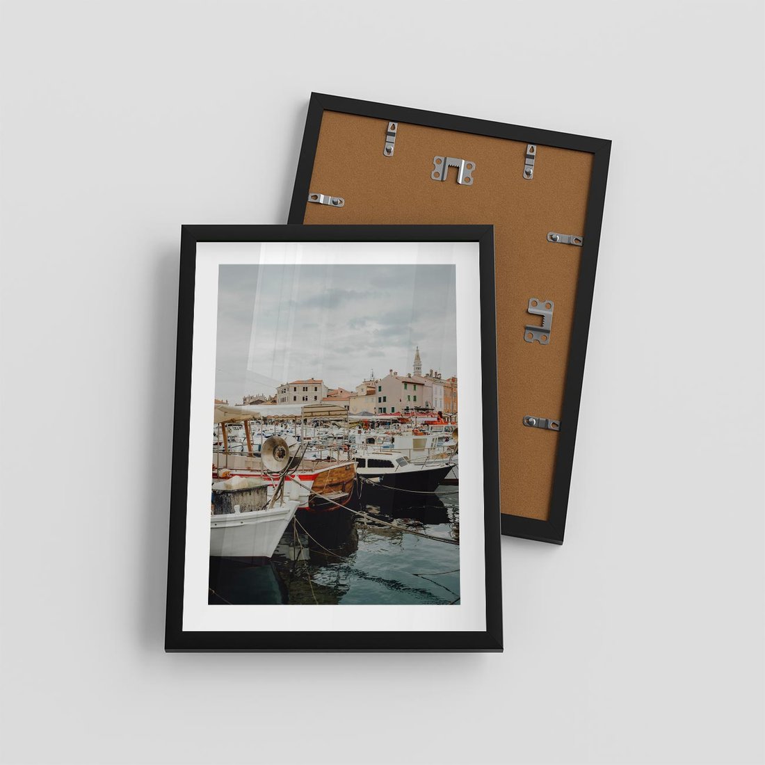 Poczuj atmosferę malowniczego krajobrazu morskiego za pomocą obrazu przedstawiającego morze, łódki i port. Ożyw swoje wnętrze spokojem i siłą oceanu.