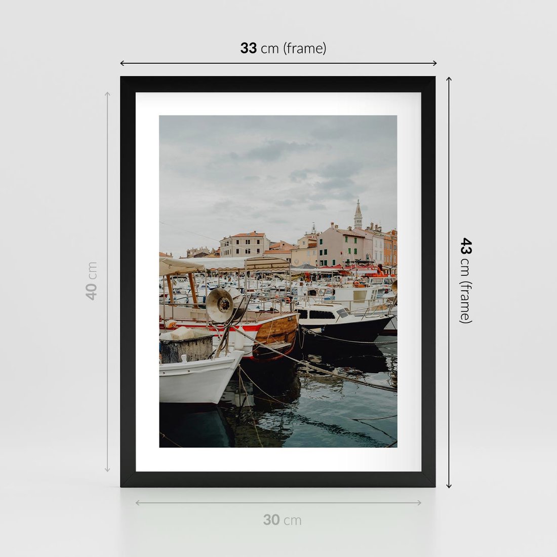 Plakat w ramie 30x40 - Malowniczy Krajobraz Morski - morze, łódki - rama czarna