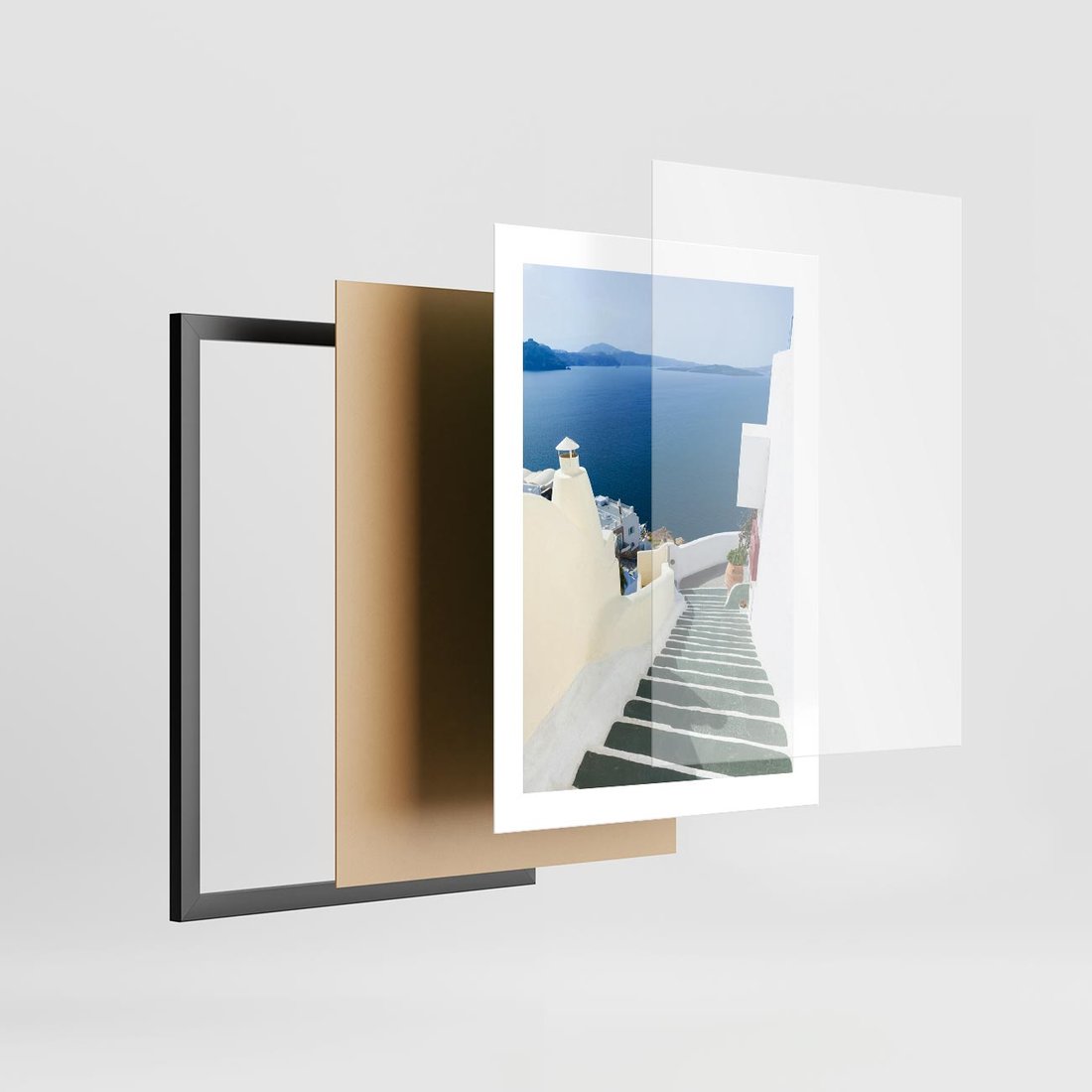Plakat w ramie 30x40 - Malowniczy urok wyspy - Santorini, schodki - rama czarna