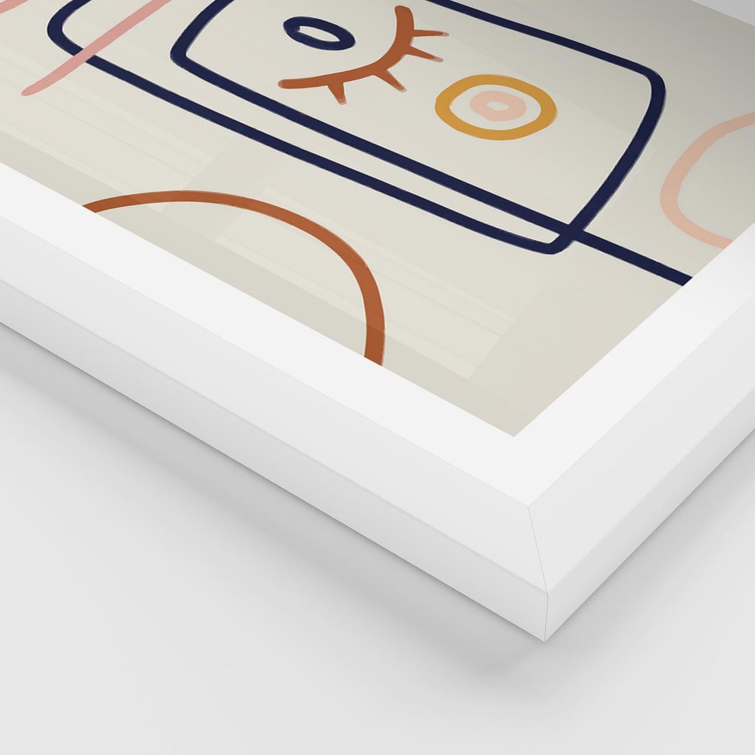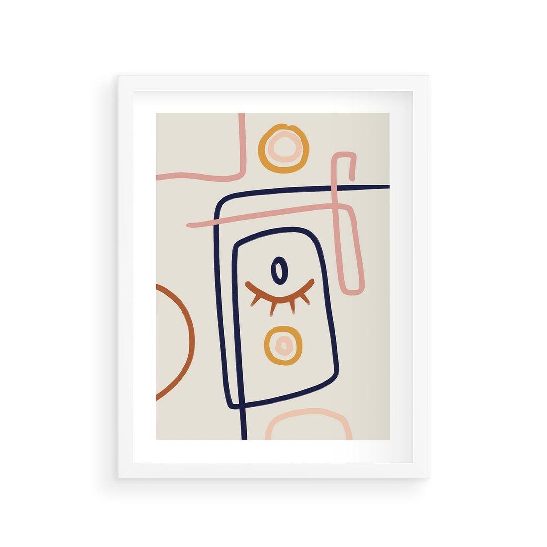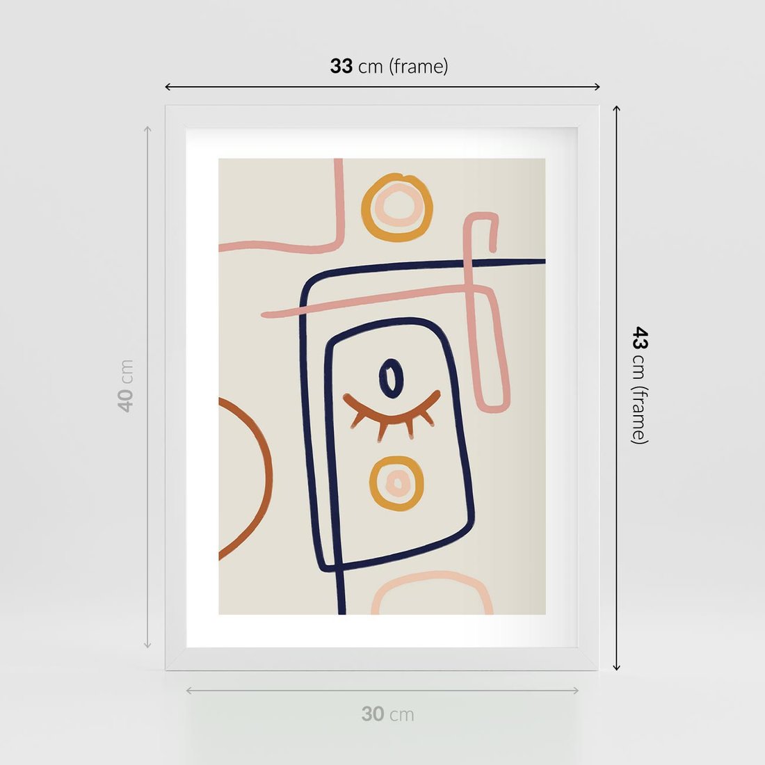 Plakat w ramie 30x40 - Manifestacje Dziwności - abstrakcja w stylu picasso, beżowe tło - rama biała