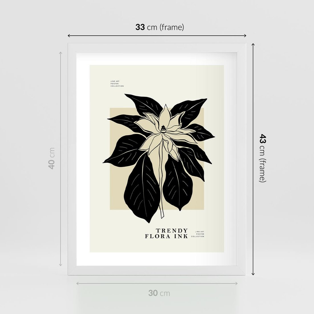 Piękno kwiatów spotyka elegancką typografię w duchu minimalizmu. Czarne kontury i monochromatyczne kolory tworzą subtelny związek. Ten obraz w minimalistycznym stylu doskonale wpasuje się w różnorodne wnętrza, dodając im delikatny akcent roślinności i estetycznego uproszczenia.