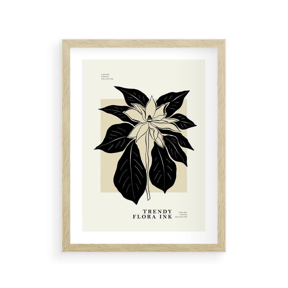 Piękno kwiatów spotyka elegancką typografię w duchu minimalizmu. Czarne kontury i monochromatyczne kolory tworzą subtelny związek. Ten obraz w minimalistycznym stylu doskonale wpasuje się w różnorodne wnętrza, dodając im delikatny akcent roślinności i estetycznego uproszczenia.